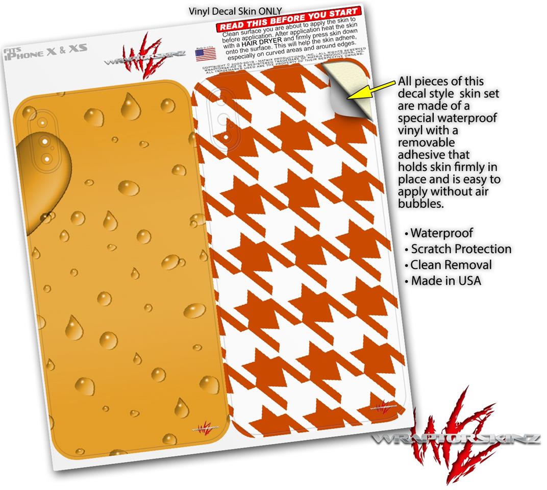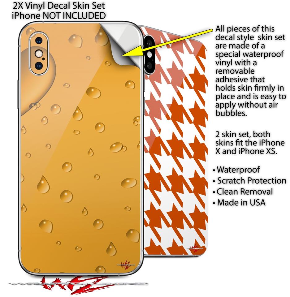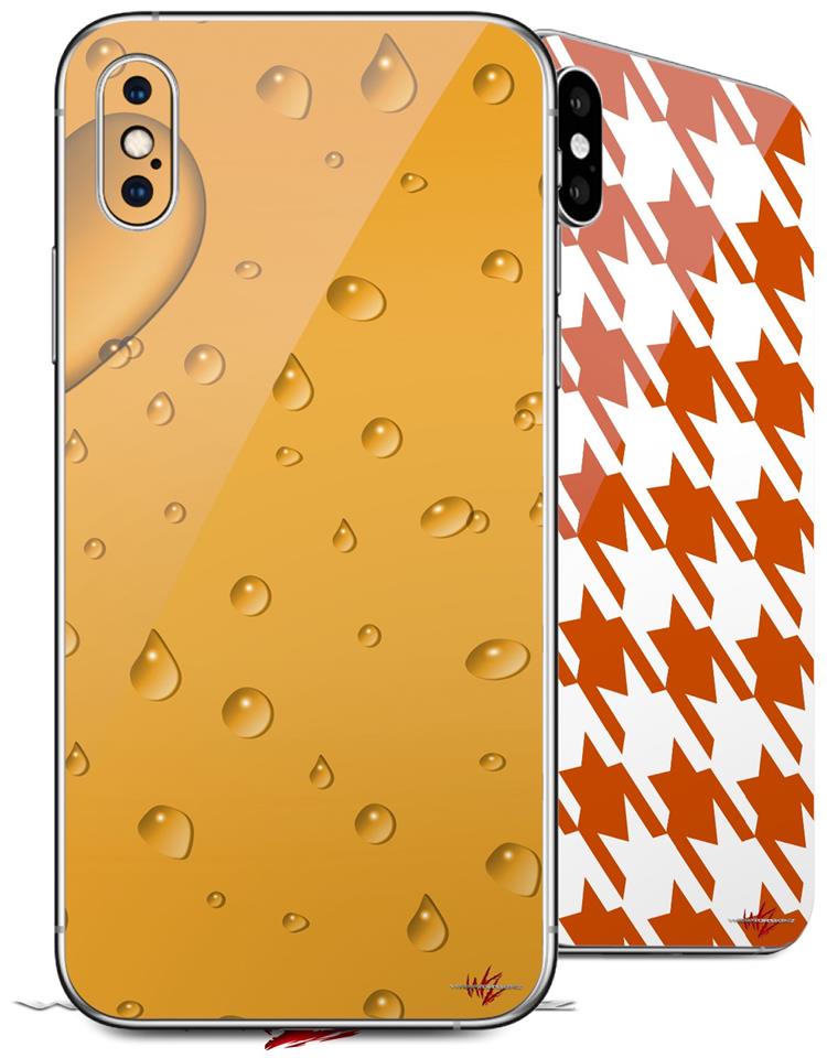 2 Decal style Skin Wraps set compatible with Apple iPhone X and XS Raining Orange