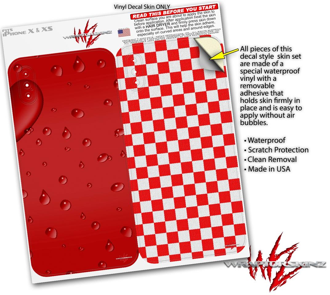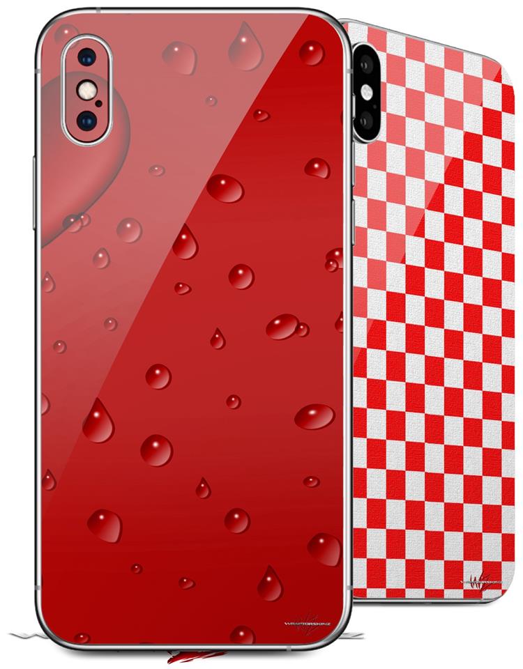 2 Decal style Skin Wraps set compatible with Apple iPhone X and XS Raining Red