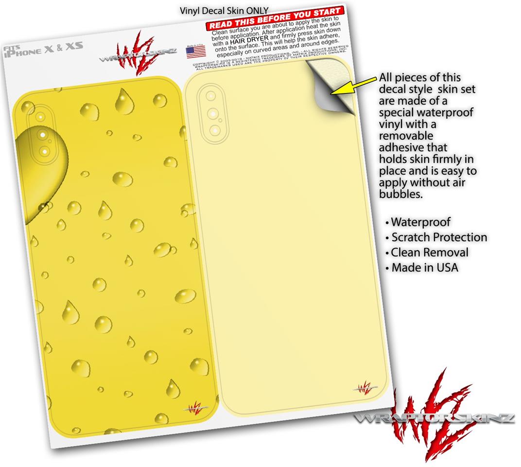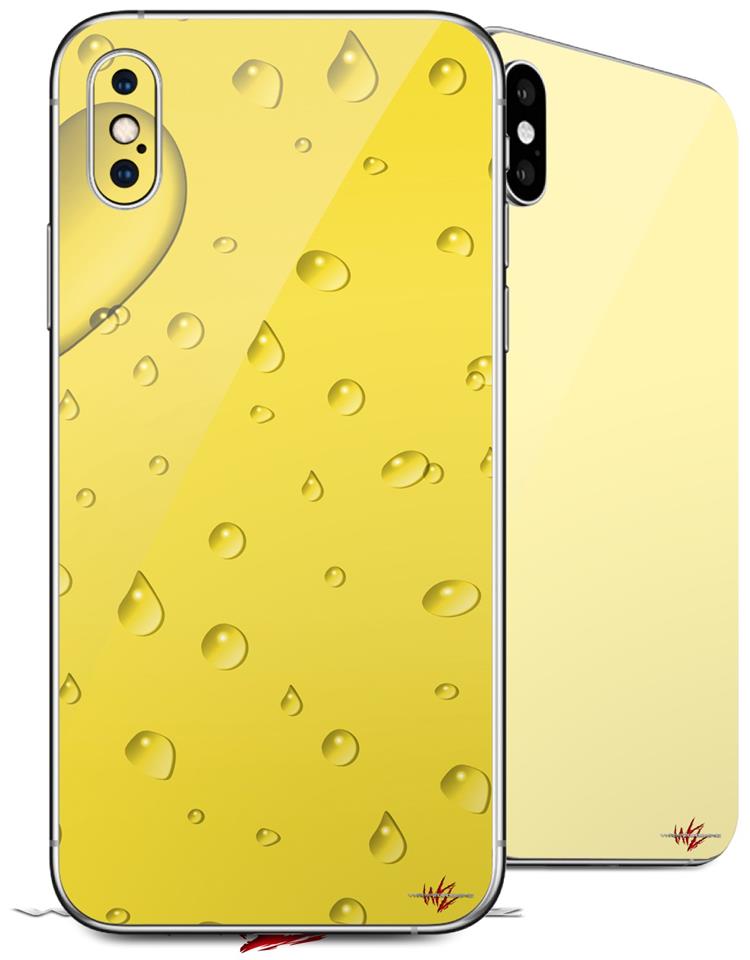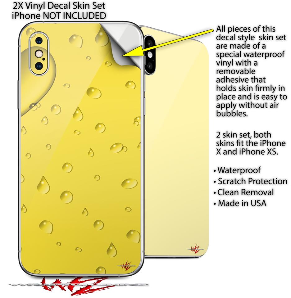 2 Decal style Skin Wraps set compatible with Apple iPhone X and XS Raining Yellow