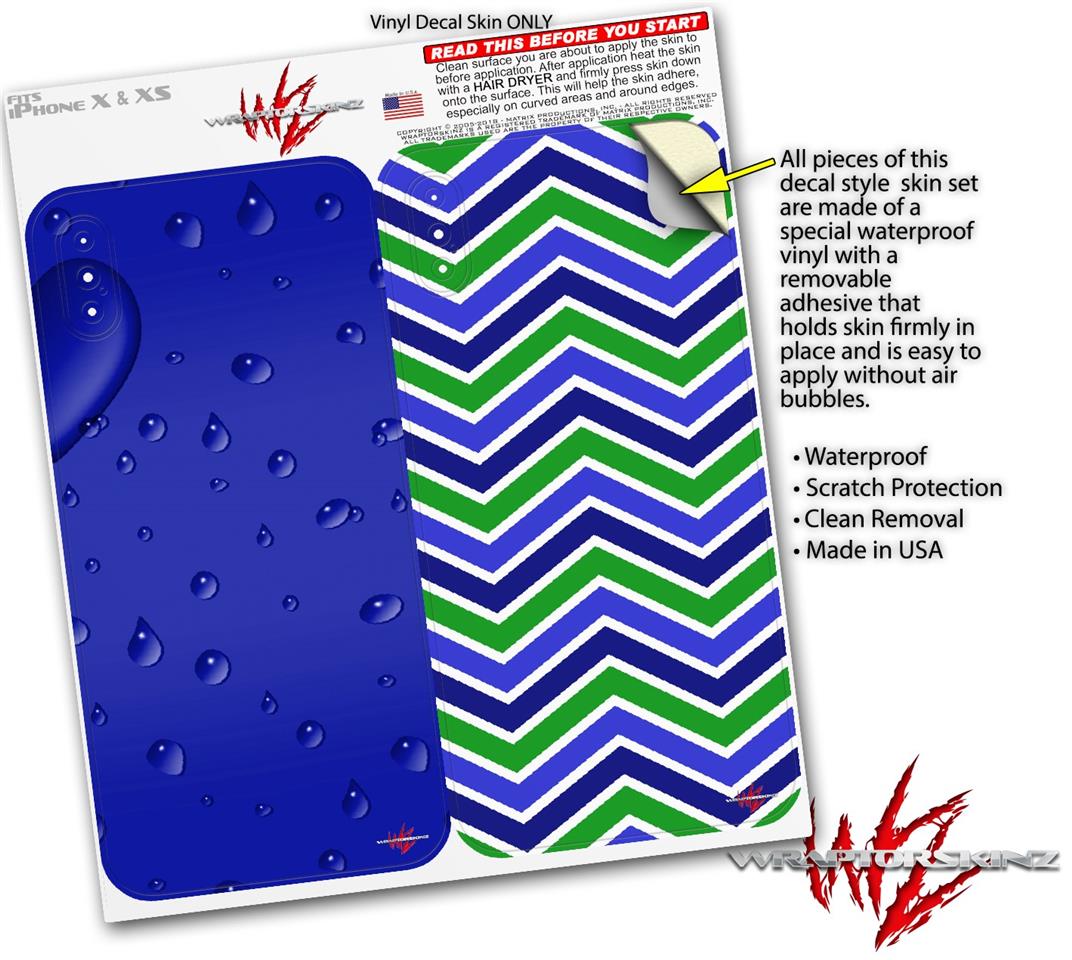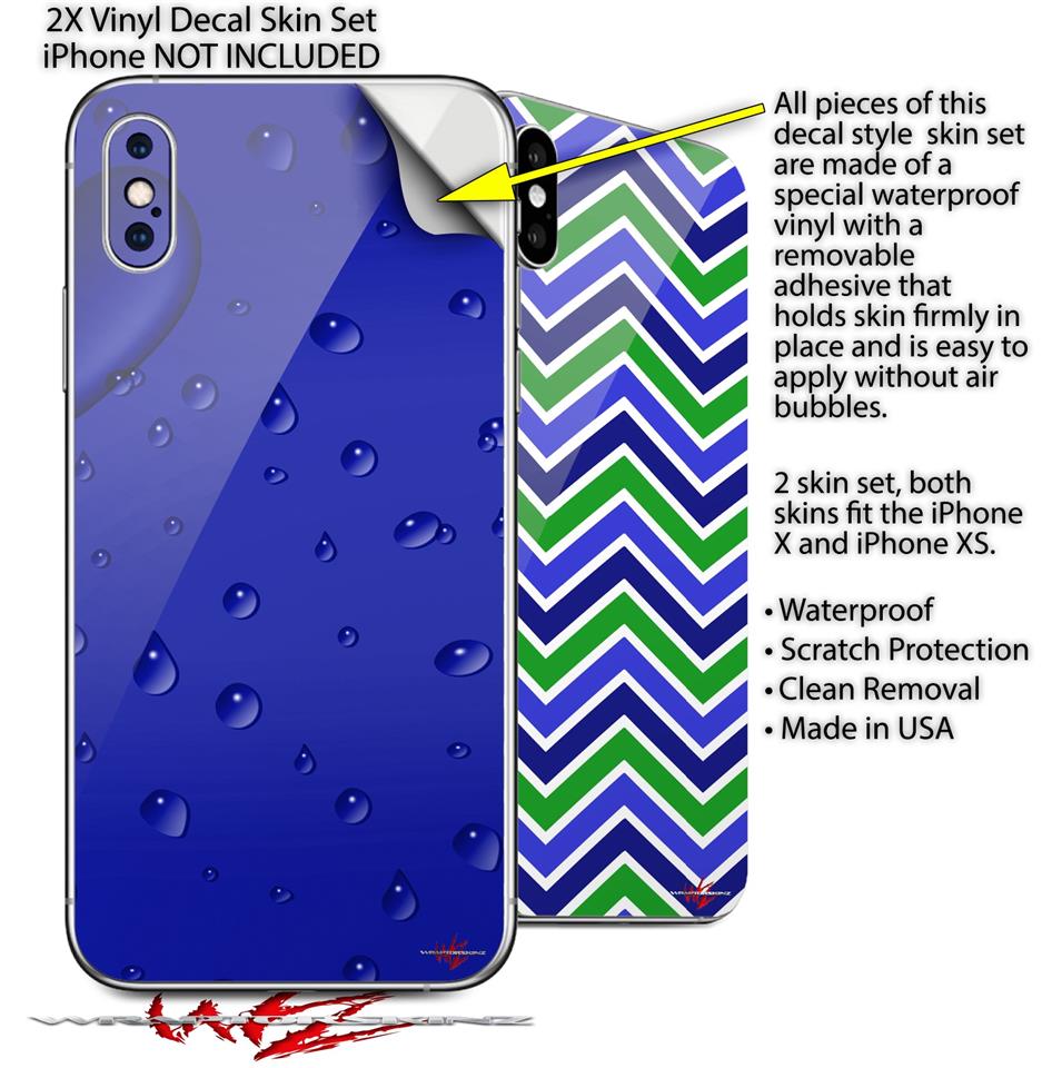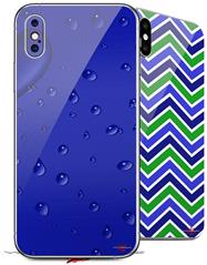 2 Decal style Skin Wraps set compatible with Apple iPhone X and XS Raining Blue