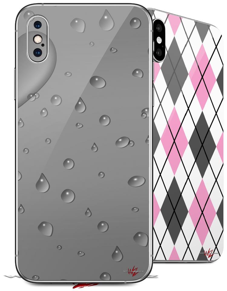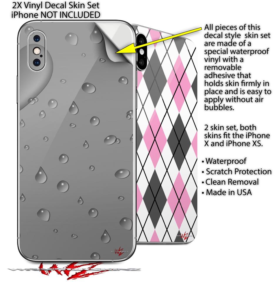 2 Decal style Skin Wraps set compatible with Apple iPhone X and XS Raining Gray