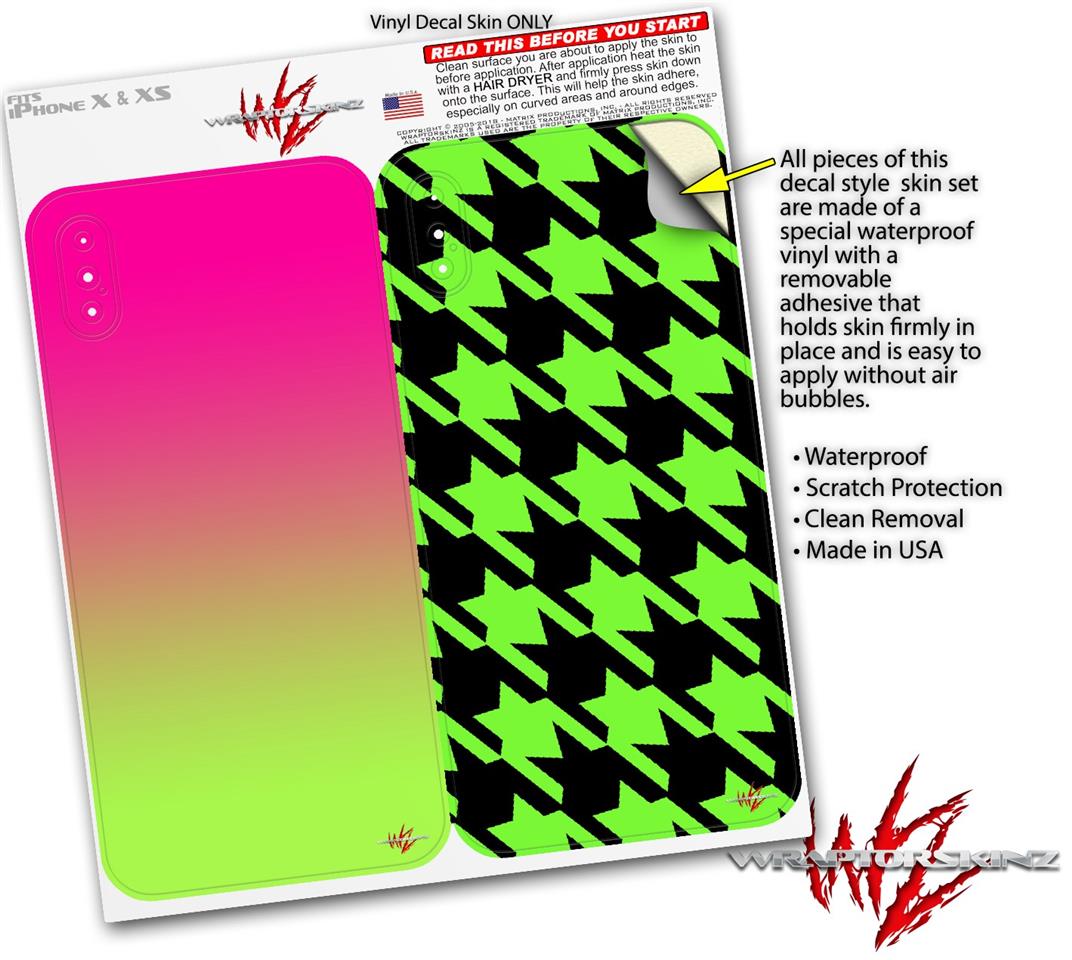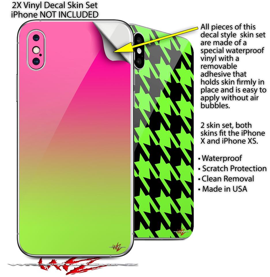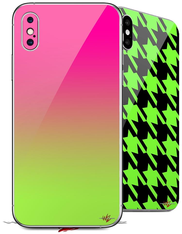 2 Decal style Skin Wraps set compatible with Apple iPhone X and XS Smooth Fades Neon Green Hot Pink
