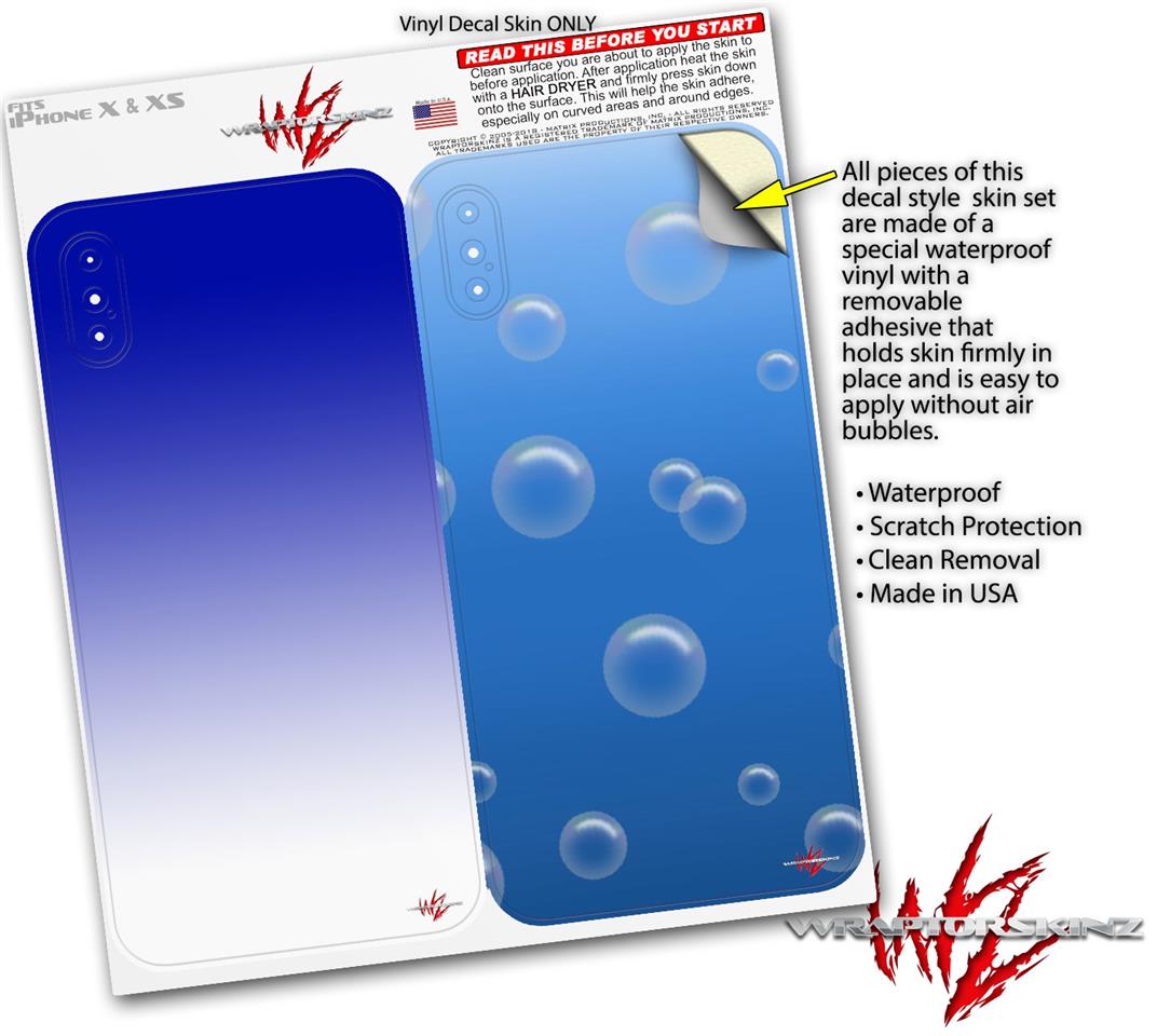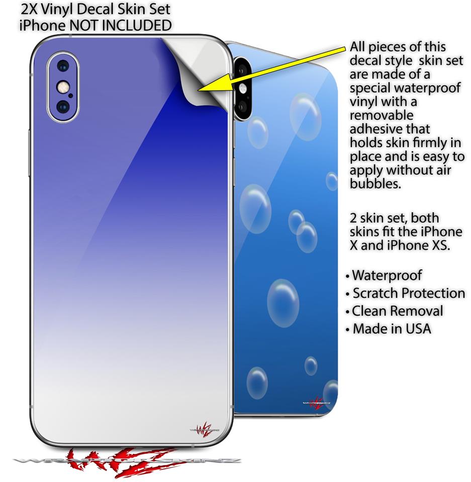 2 Decal style Skin Wraps set compatible with Apple iPhone X and XS Smooth Fades White Blue