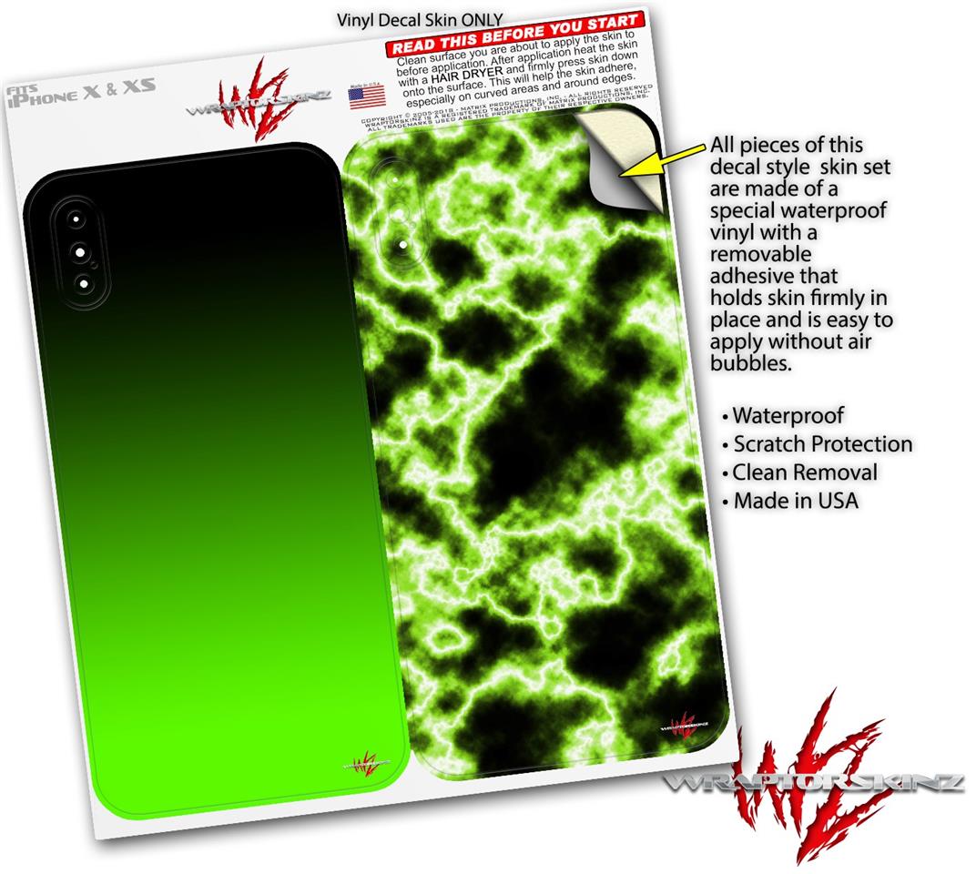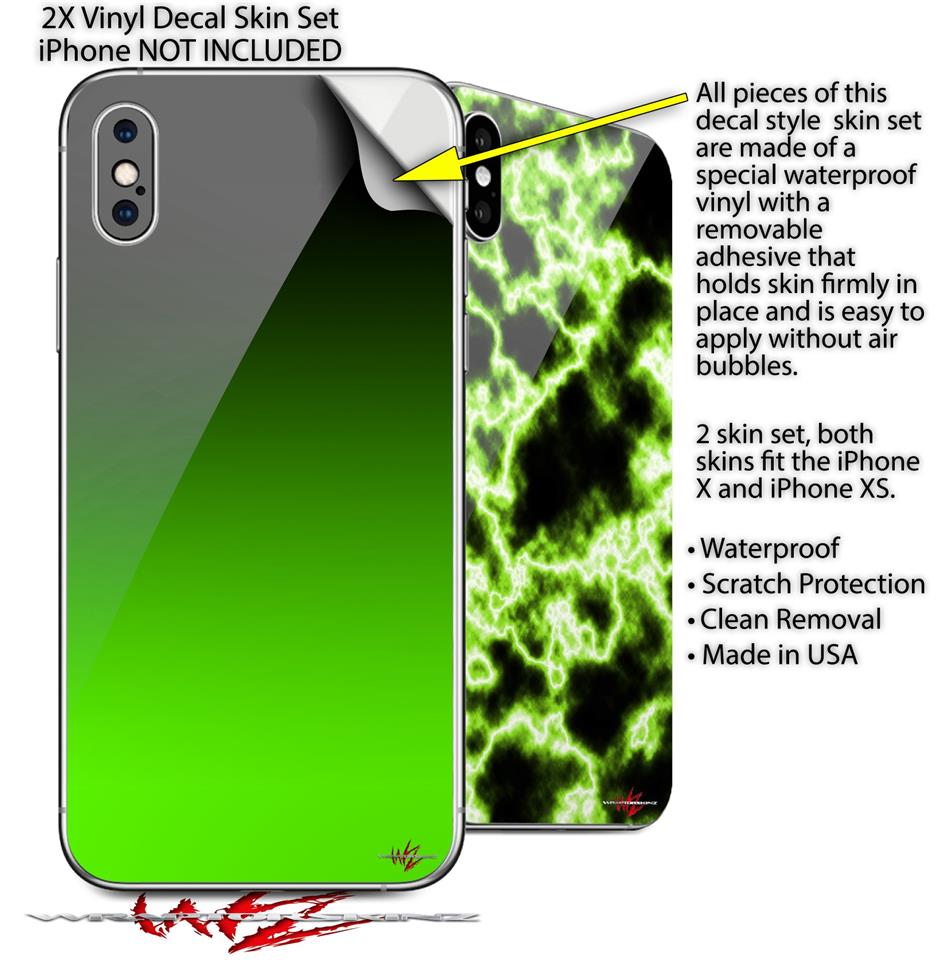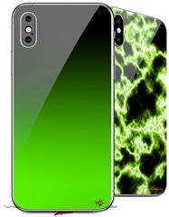 2 Decal style Skin Wraps set compatible with Apple iPhone X and XS Smooth Fades Green Black