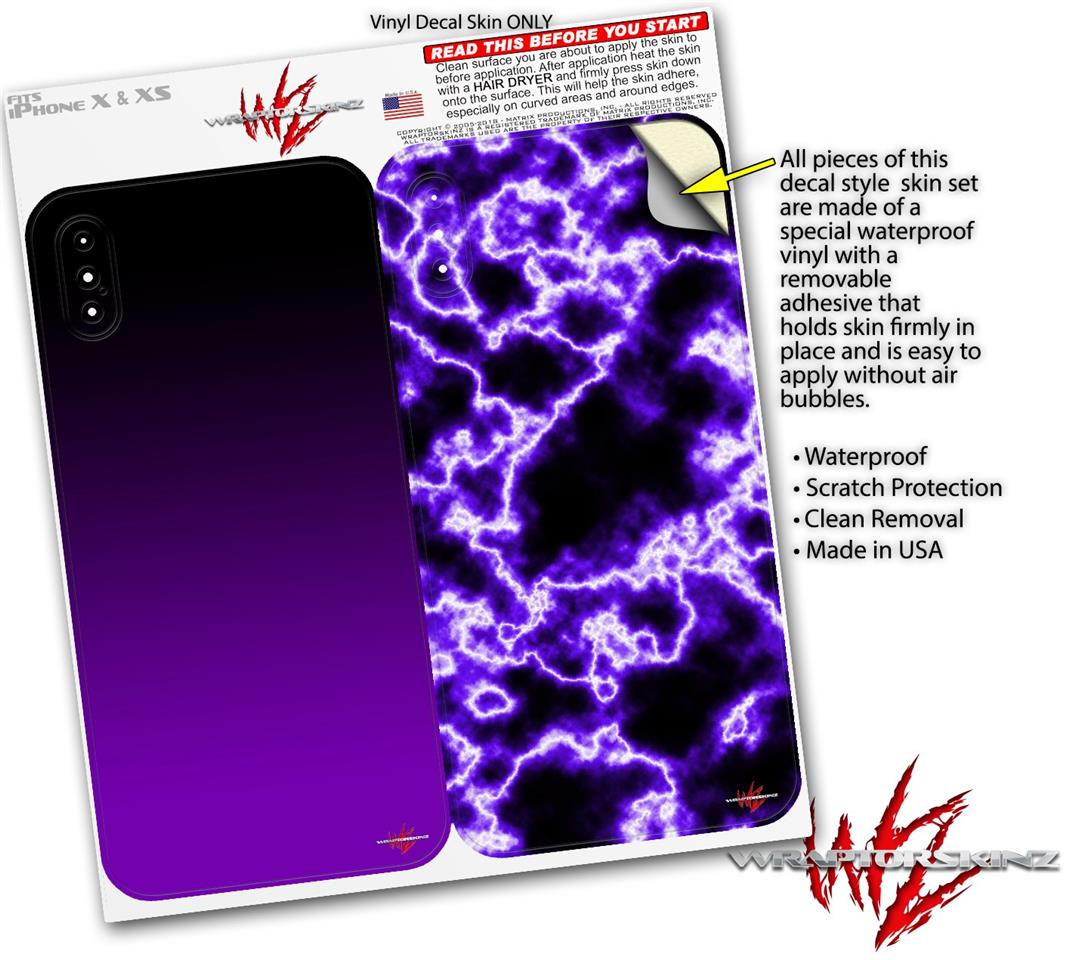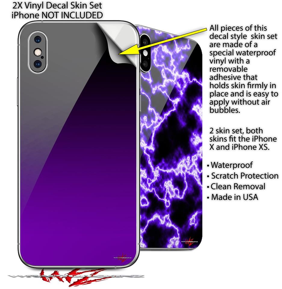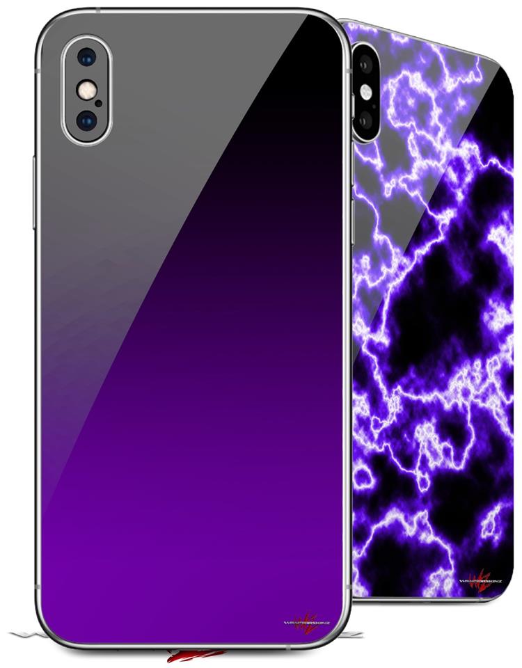 2 Decal style Skin Wraps set compatible with Apple iPhone X and XS Smooth Fades Purple Black