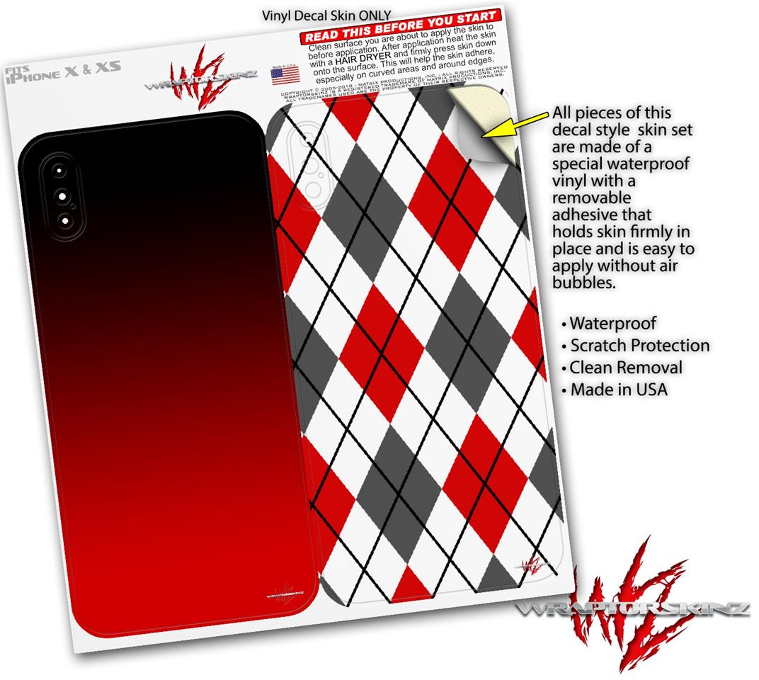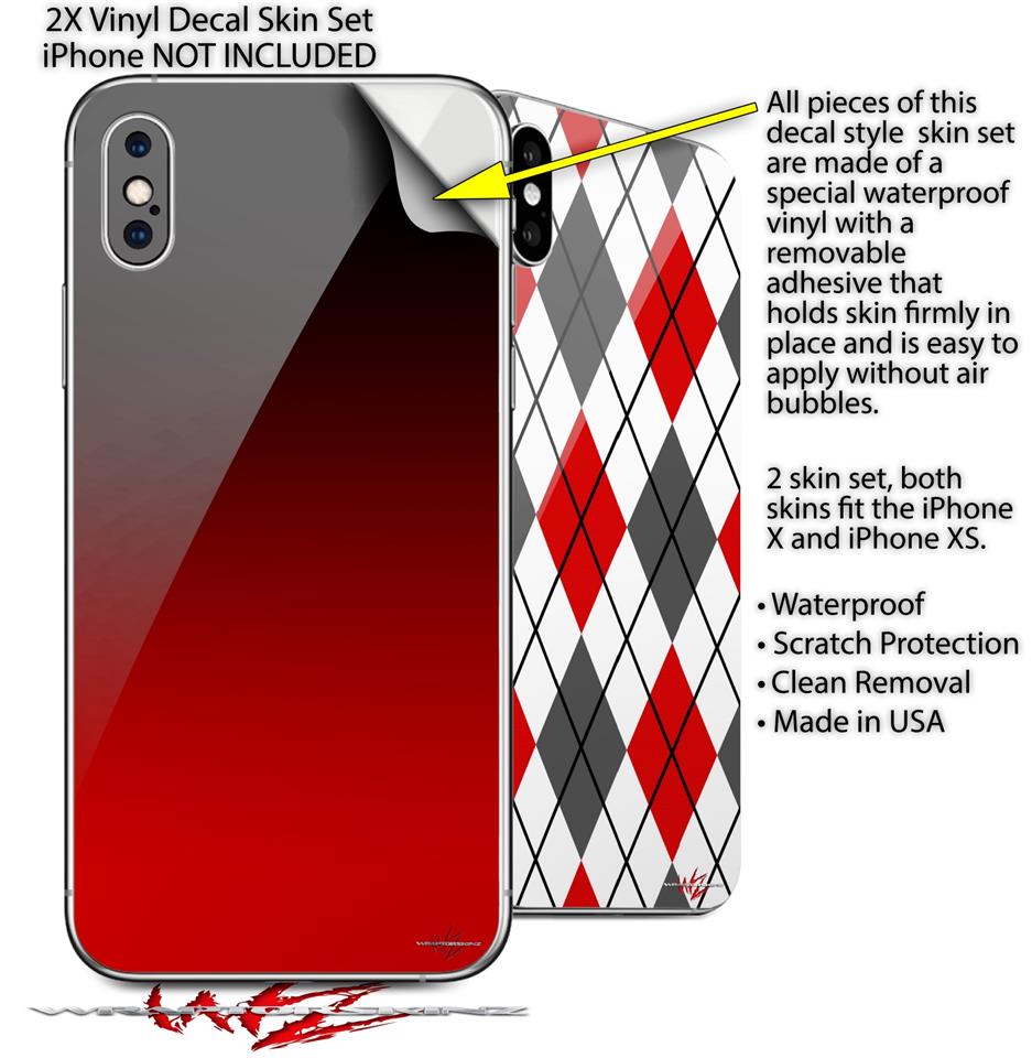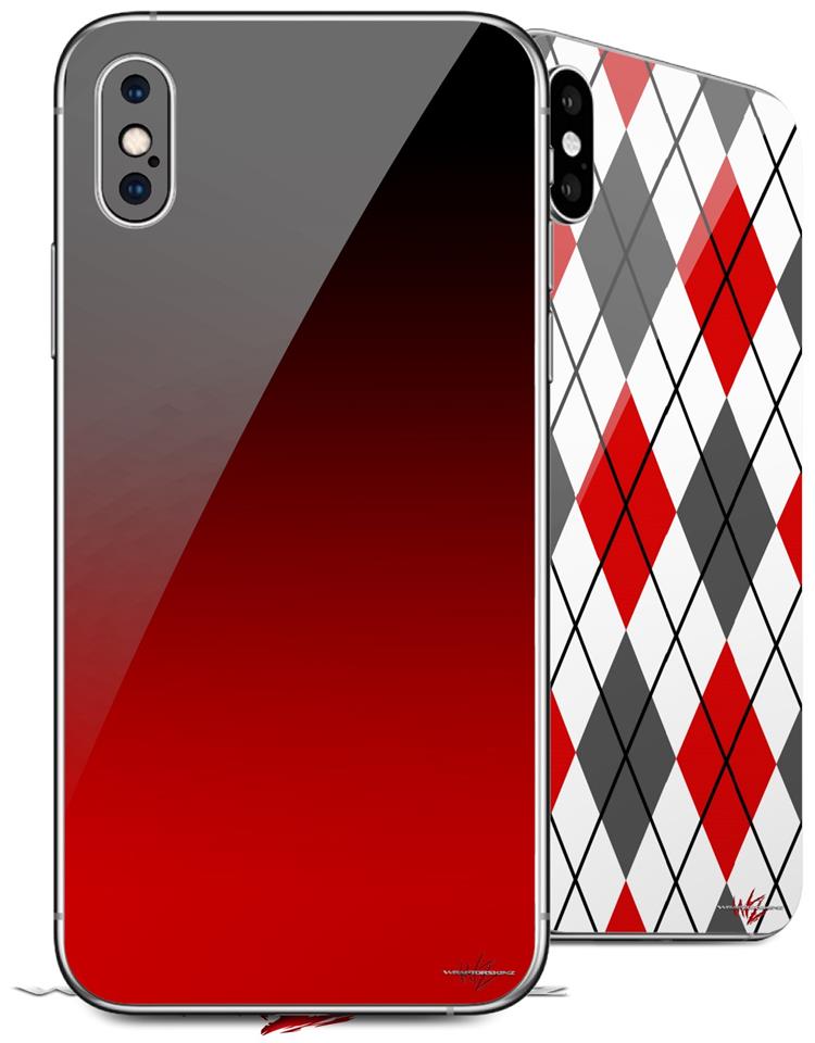 2 Decal style Skin Wraps set compatible with Apple iPhone X and XS Smooth Fades Red Black