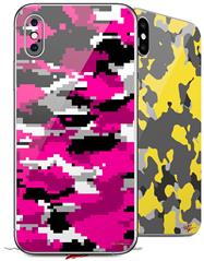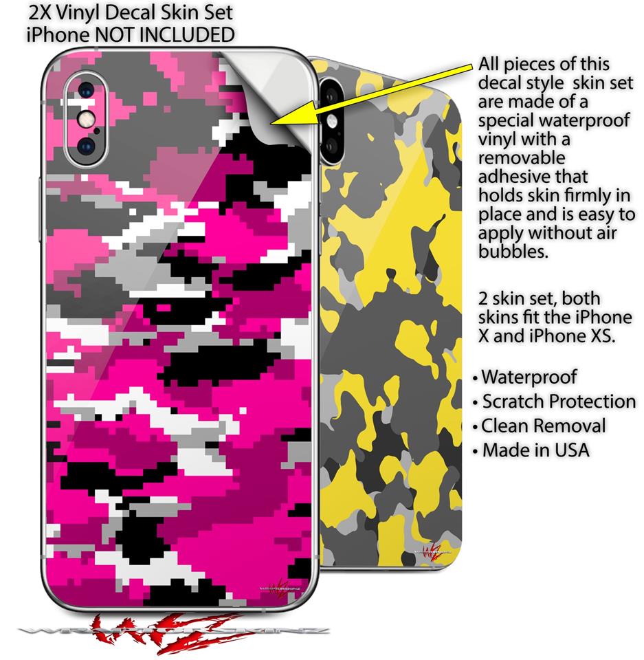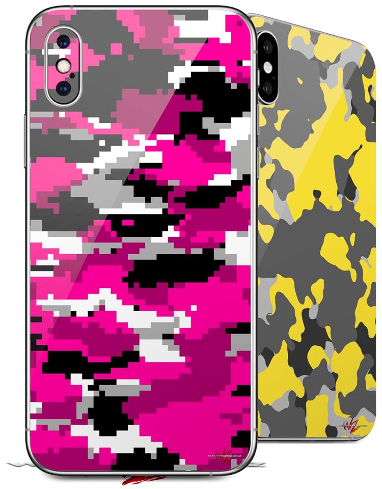 2 Decal style Skin Wraps set compatible with Apple iPhone X and XS WraptorCamo Digital Camo Hot Pink