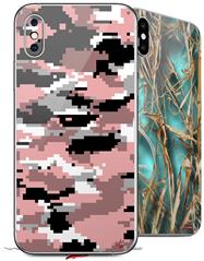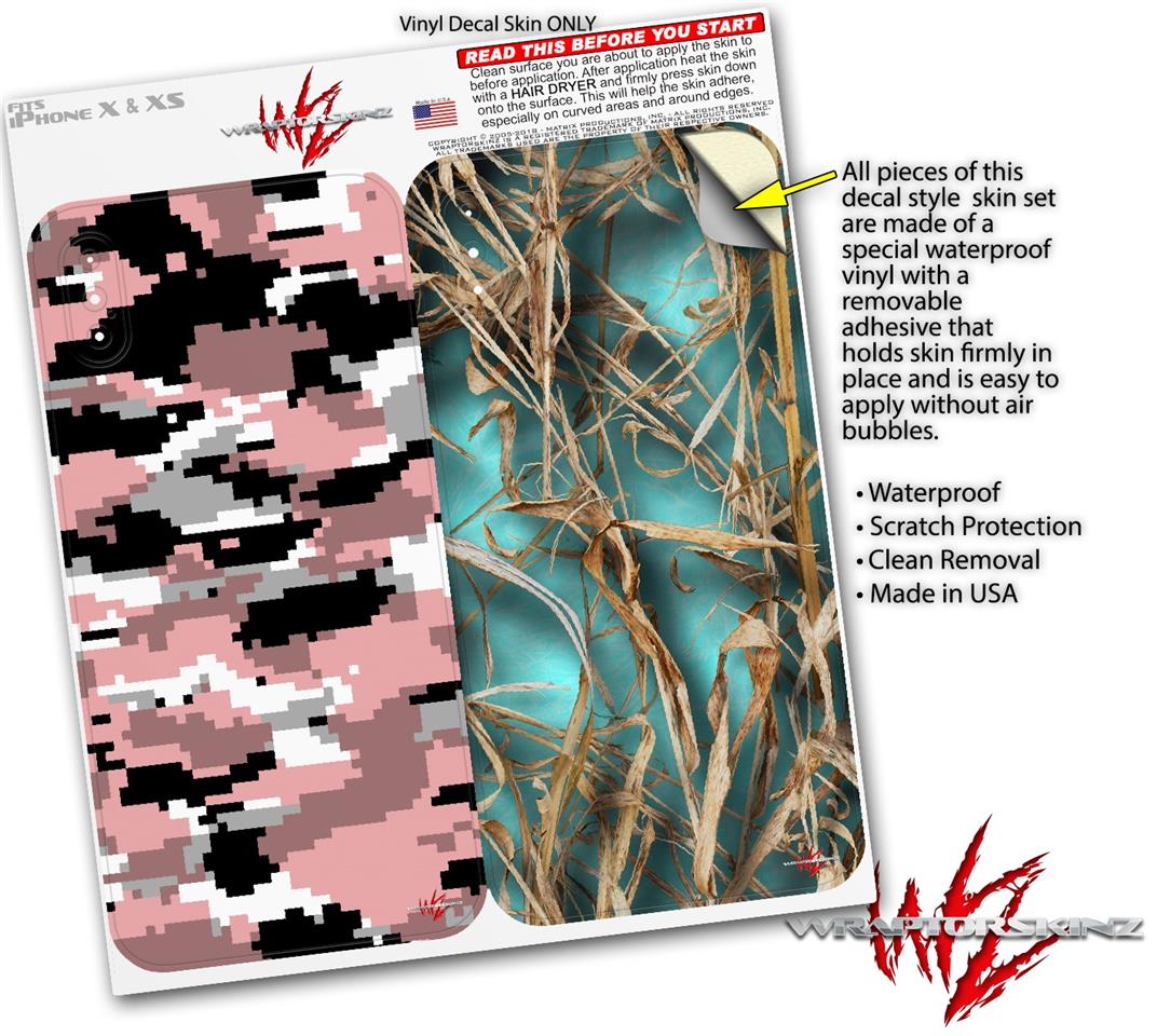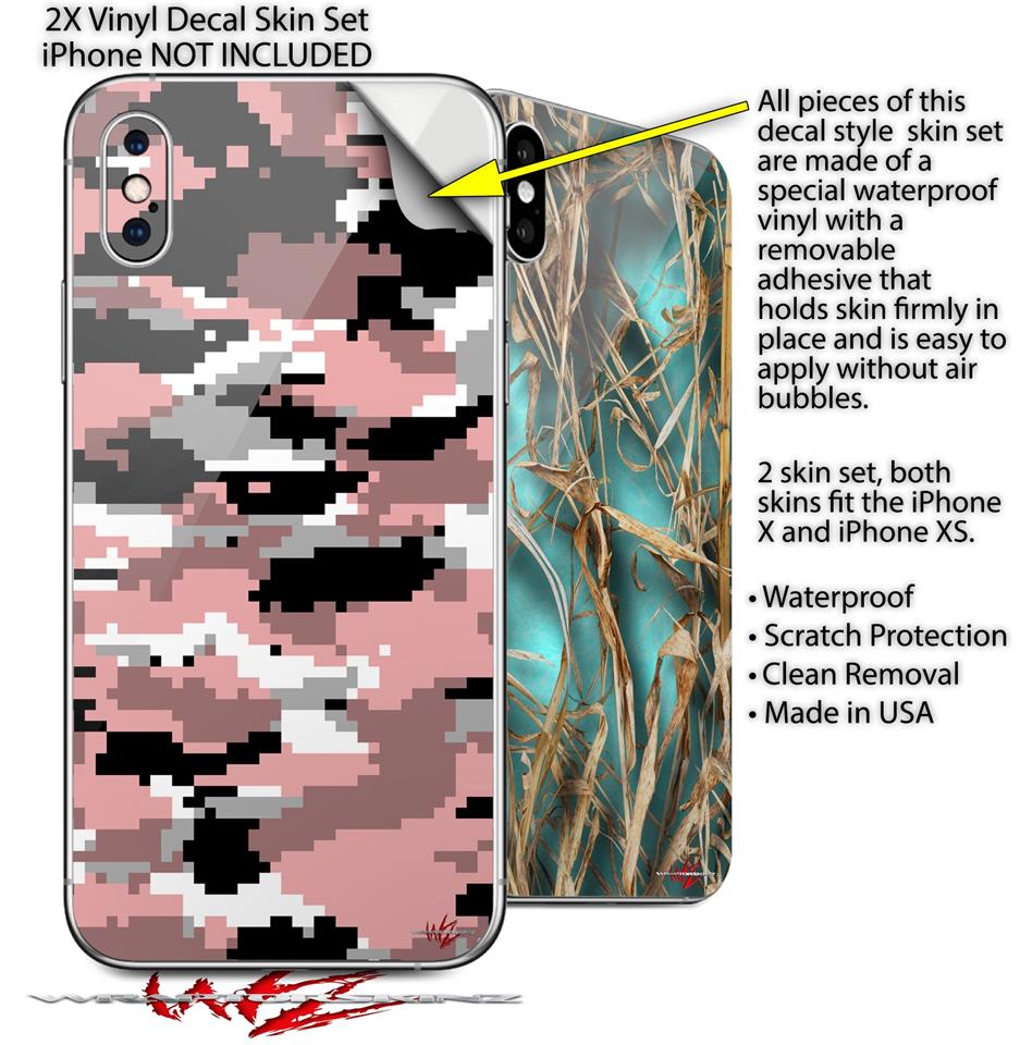 2 Decal style Skin Wraps set compatible with Apple iPhone X and XS WraptorCamo Digital Camo Pink