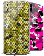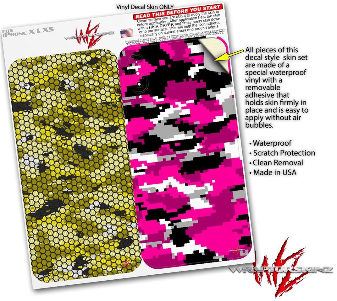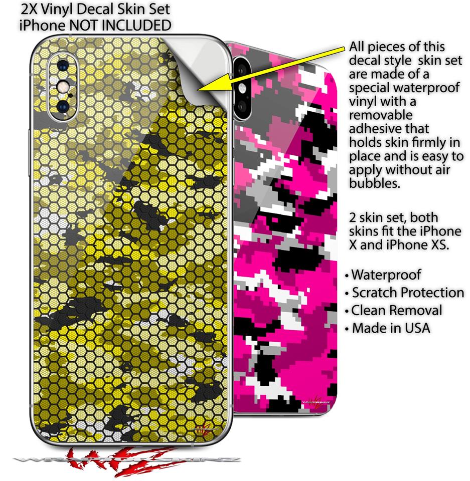 2 Decal style Skin Wraps set compatible with Apple iPhone X and XS HEX Mesh Camo 01 Yellow