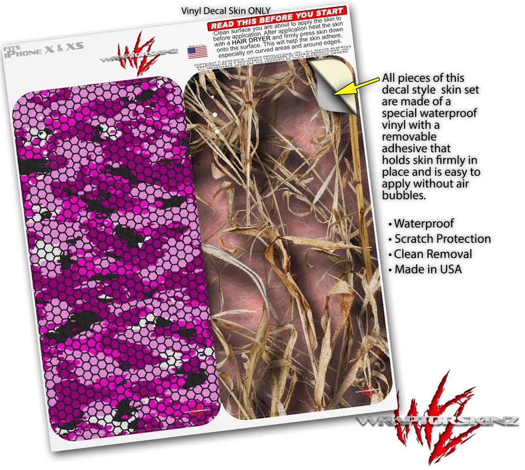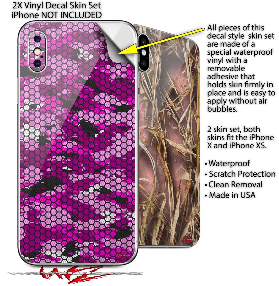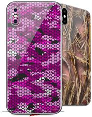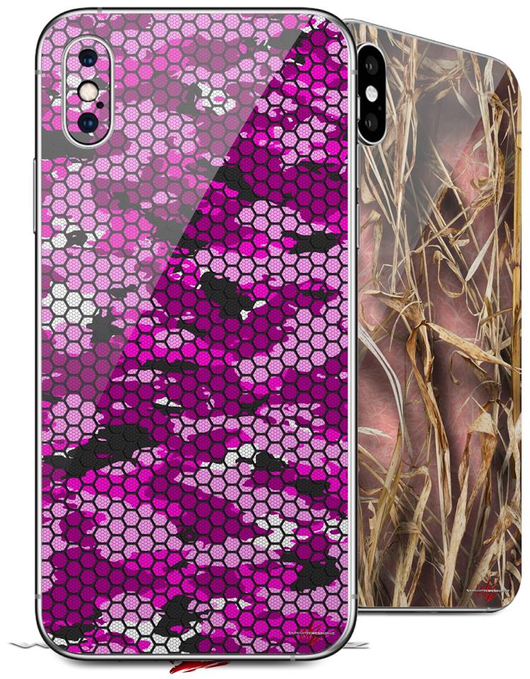 2 Decal style Skin Wraps set compatible with Apple iPhone X and XS HEX Mesh Camo 01 Pink