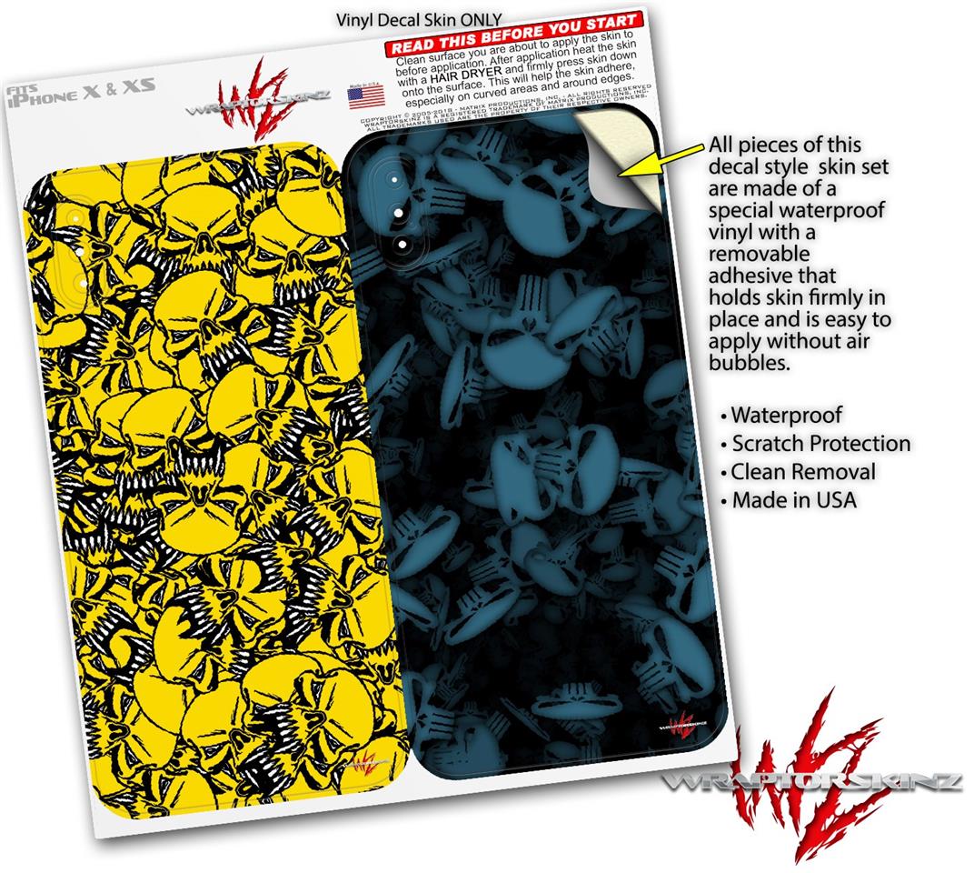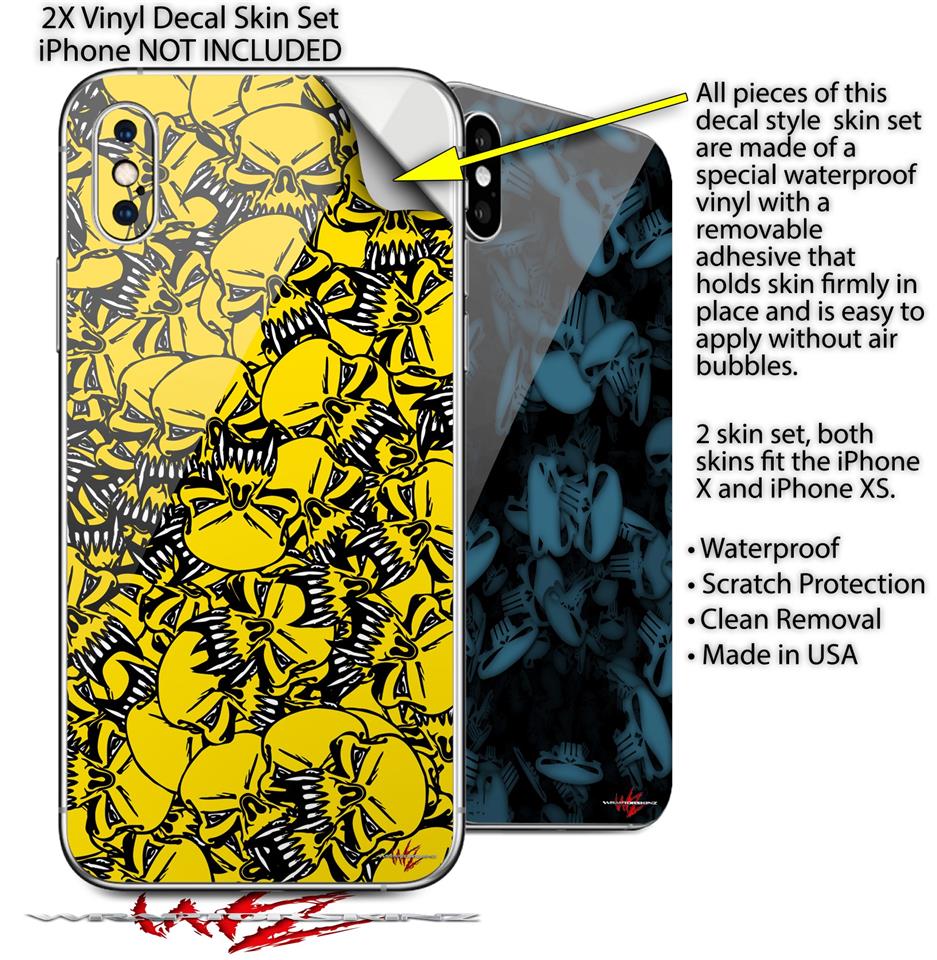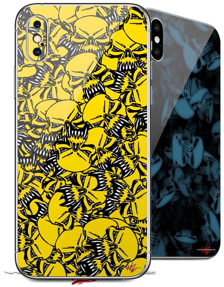 2 Decal style Skin Wraps set compatible with Apple iPhone X and XS Scattered Skulls Yellow