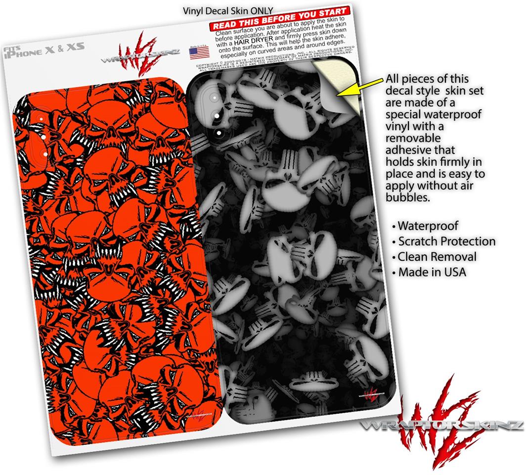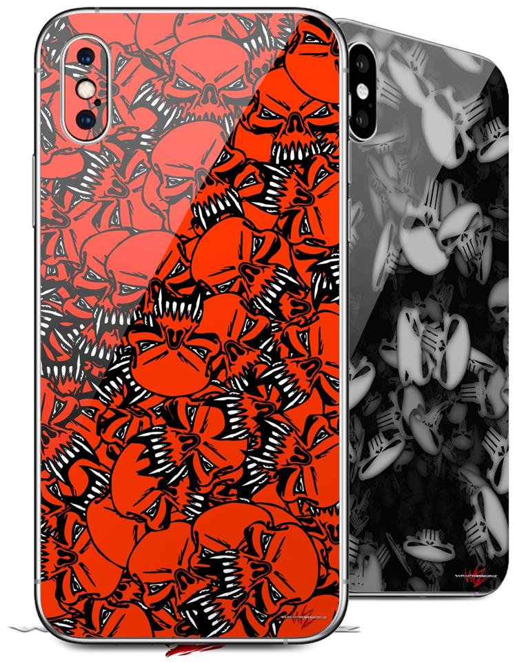 2 Decal style Skin Wraps set compatible with Apple iPhone X and XS Scattered Skulls Red