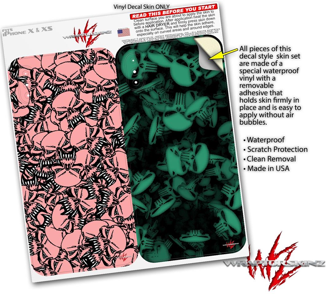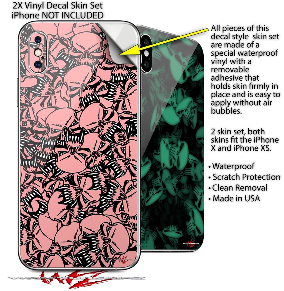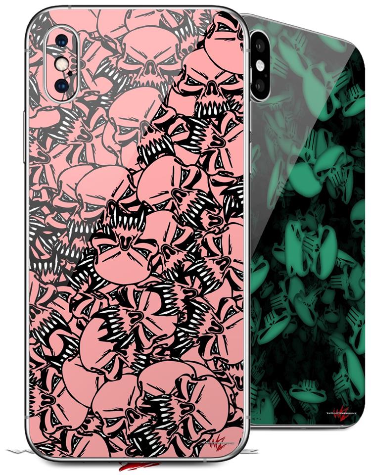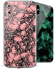 2 Decal style Skin Wraps set compatible with Apple iPhone X and XS Scattered Skulls Pink