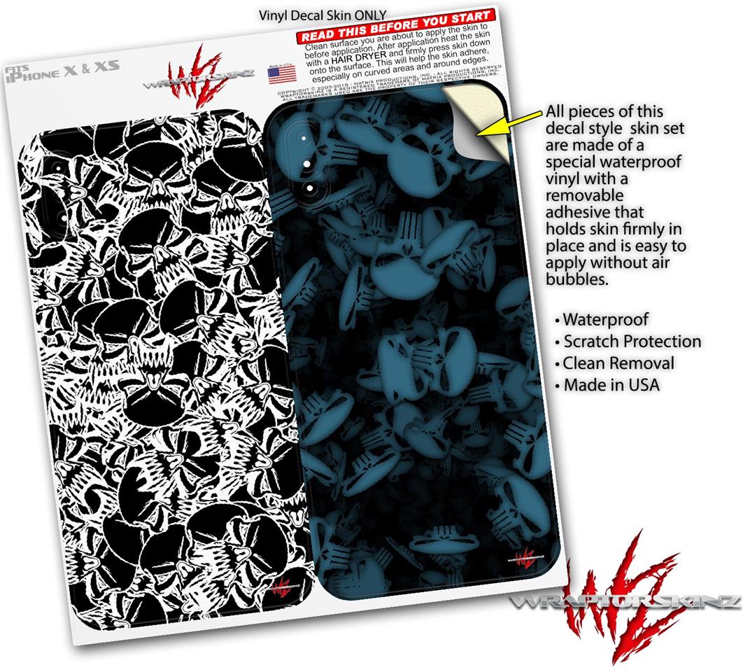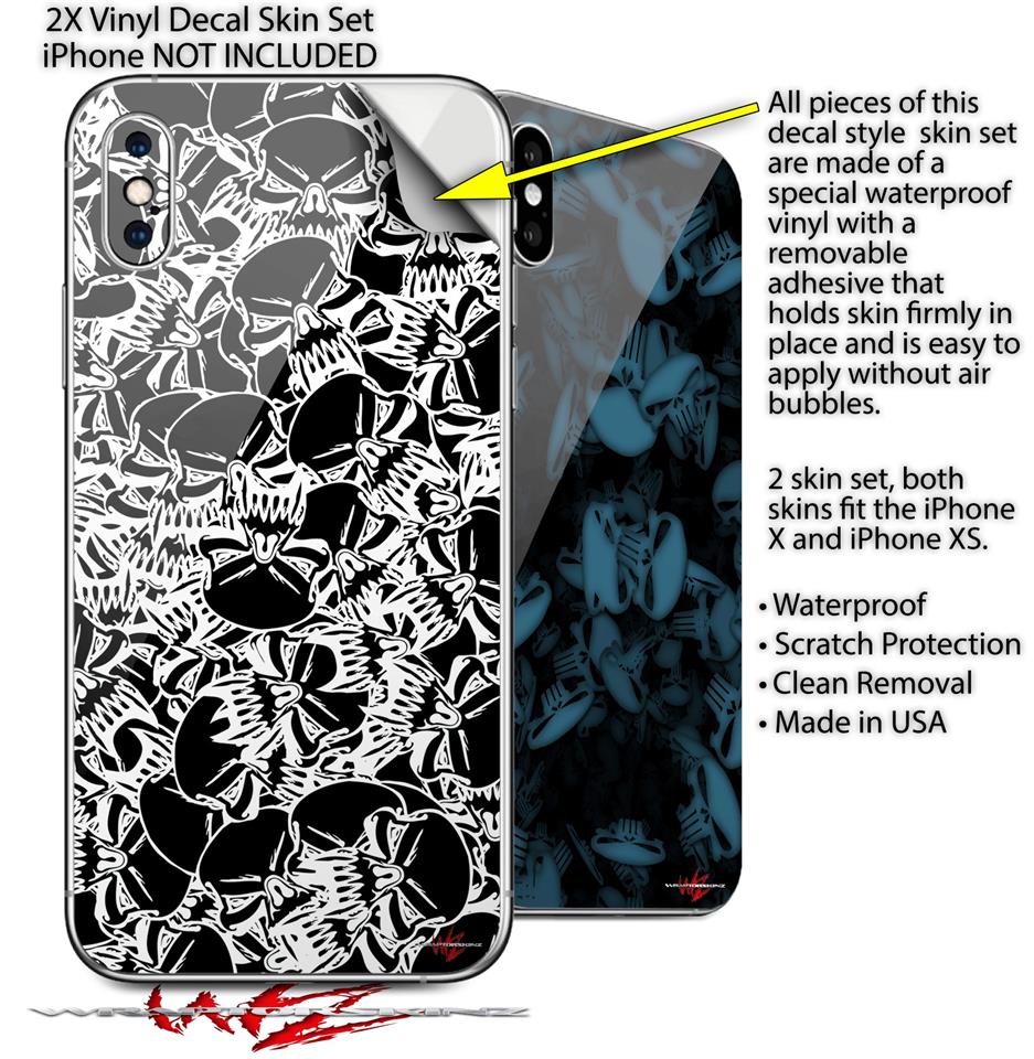 2 Decal style Skin Wraps set compatible with Apple iPhone X and XS Scattered Skulls Black