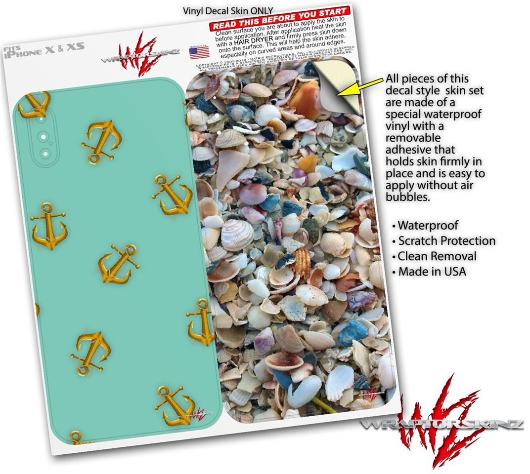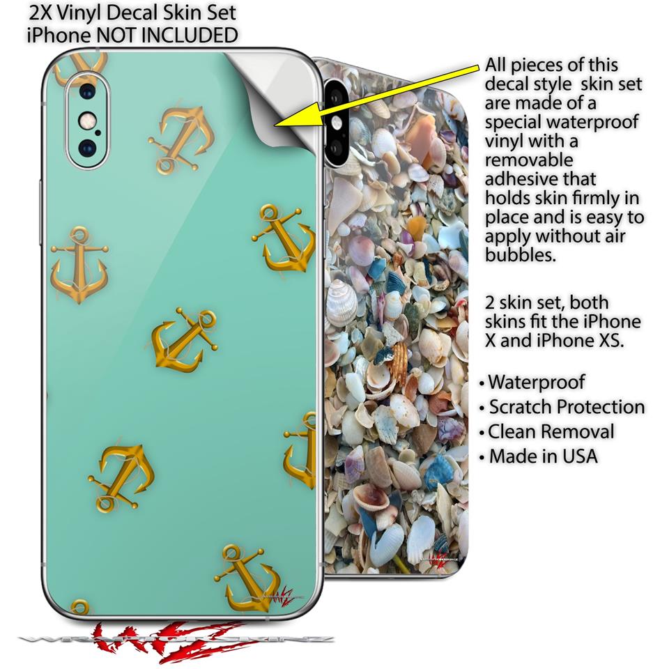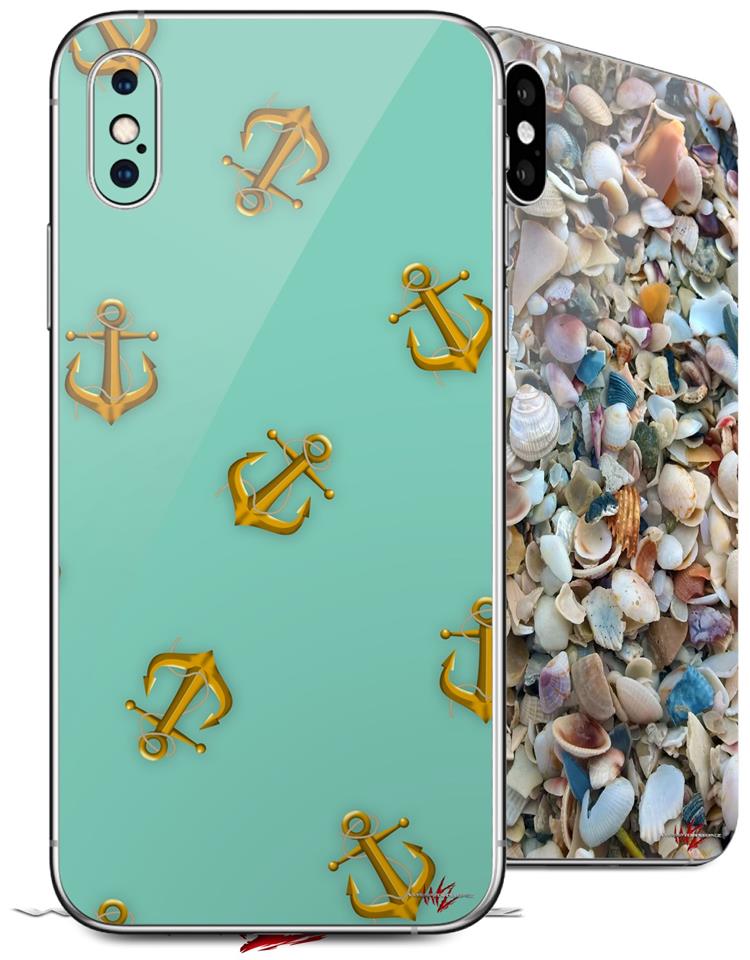 2 Decal style Skin Wraps set compatible with Apple iPhone X and XS Anchors Away Seafoam Green