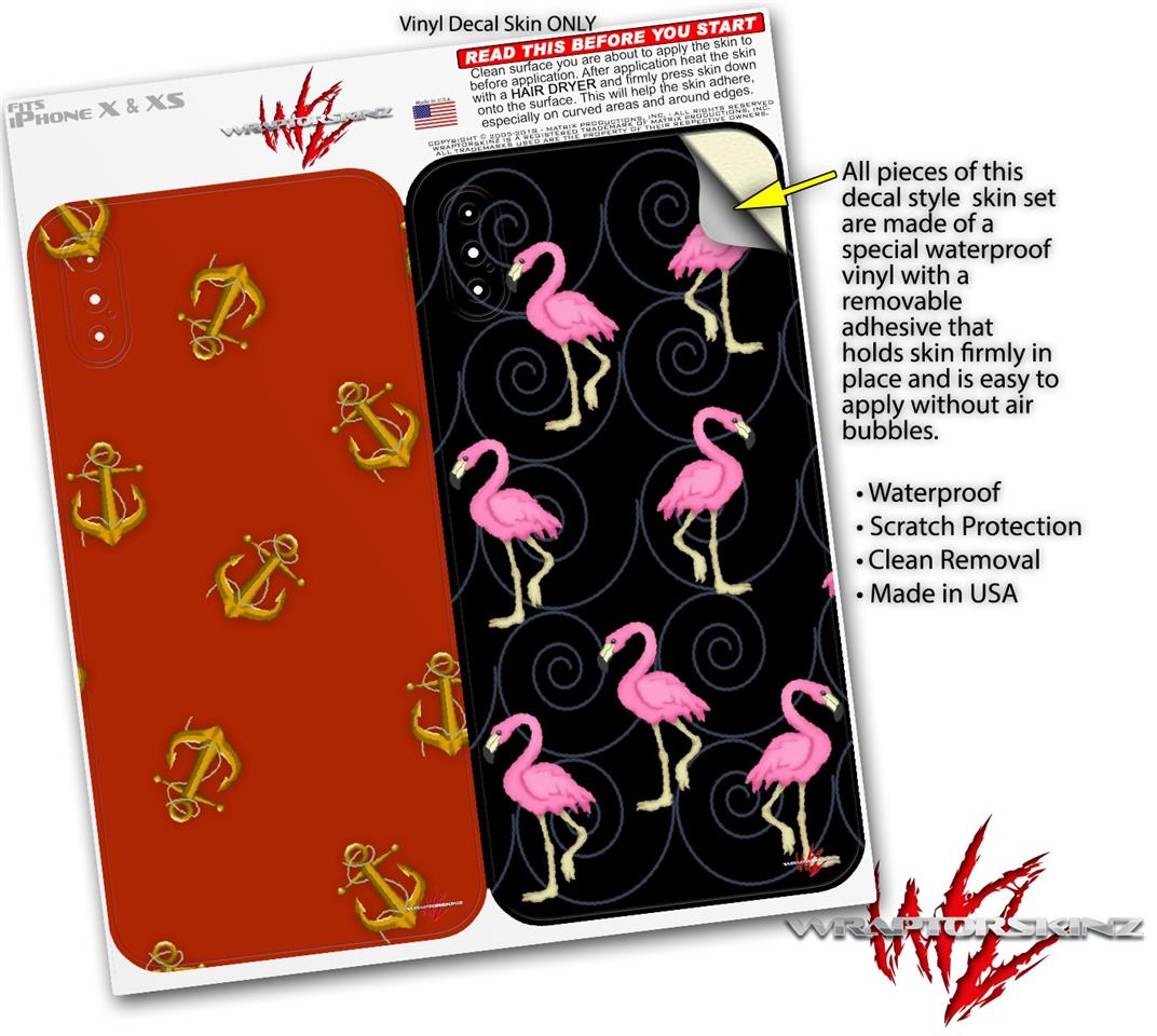 2 Decal style Skin Wraps set compatible with Apple iPhone X and XS Anchors Away Red Dark
