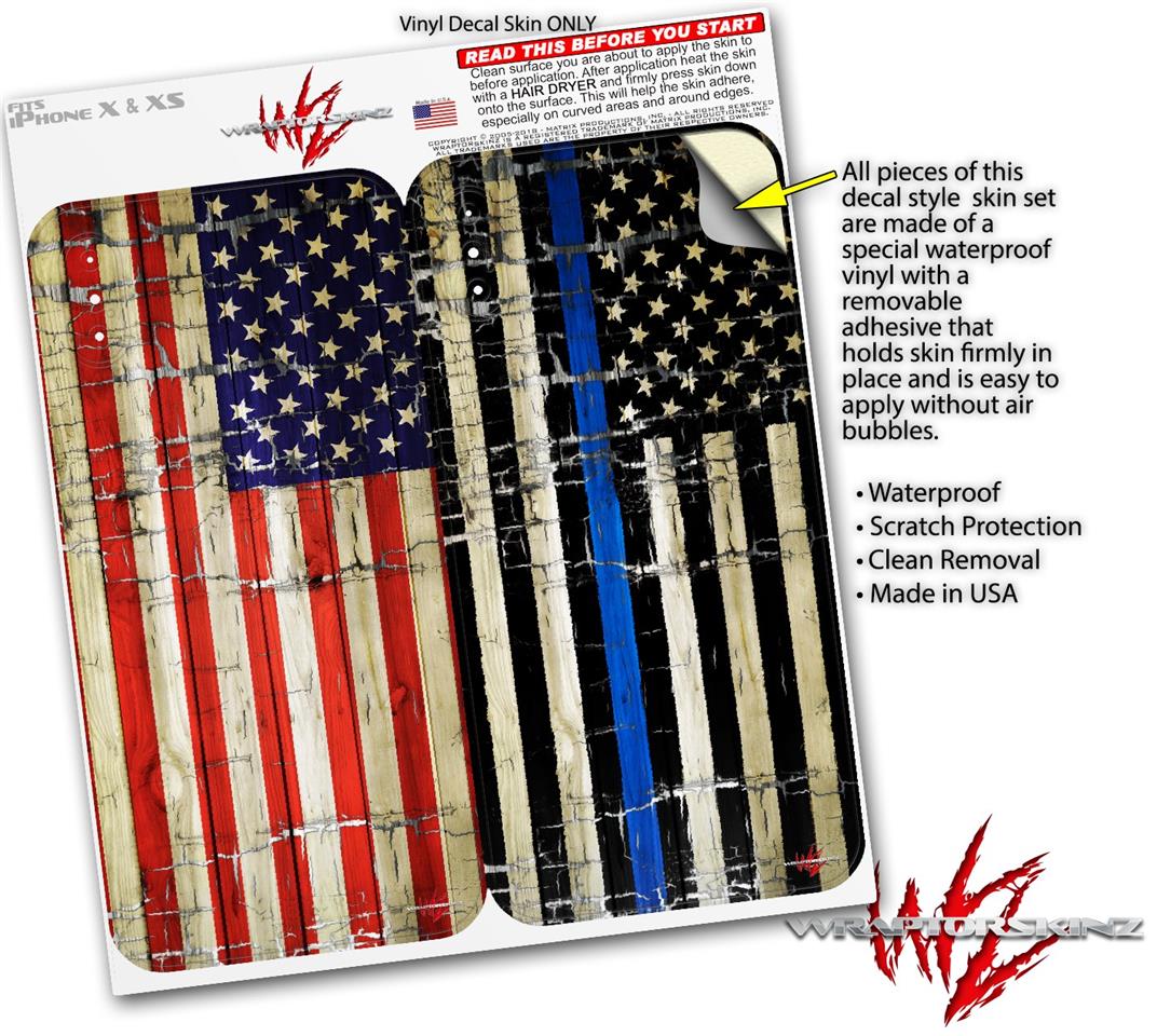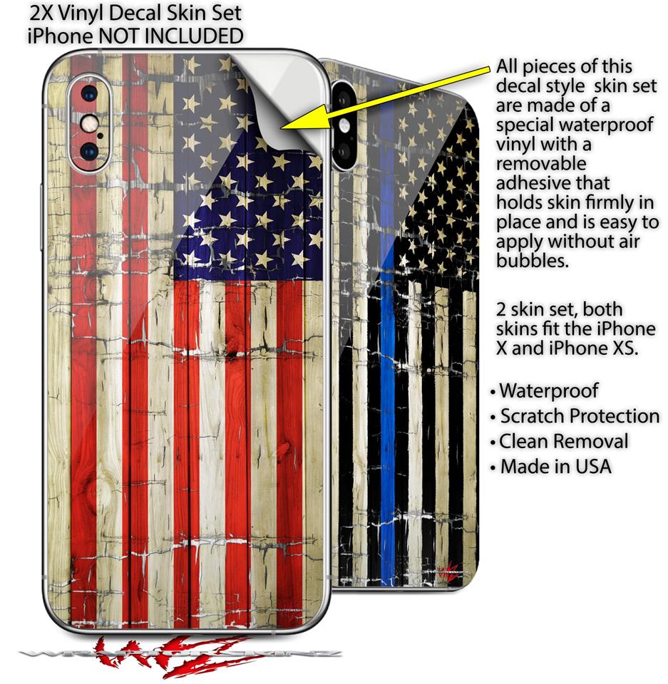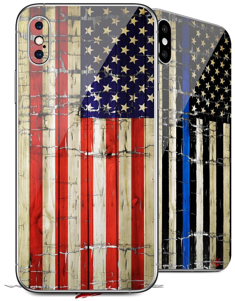 2 Decal style Skin Wraps set compatible with Apple iPhone X and XS Painted Faded and Cracked USA American Flag