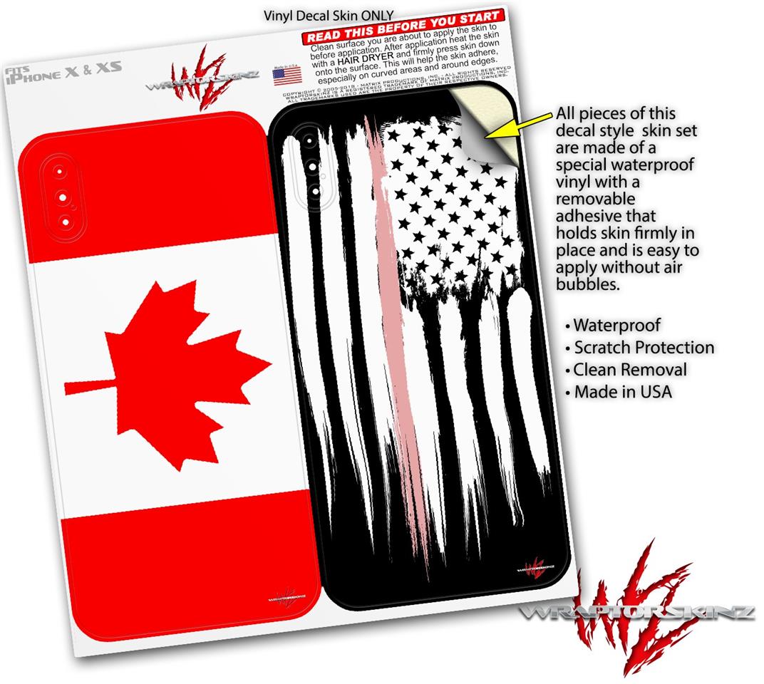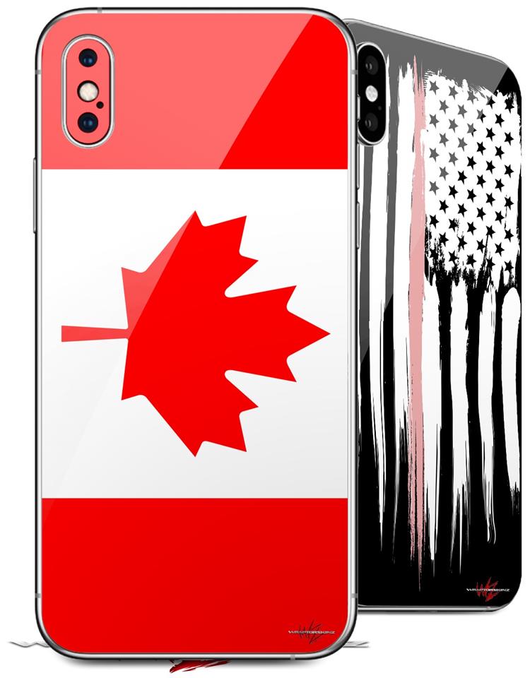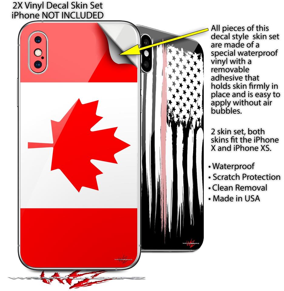 2 Decal style Skin Wraps set compatible with Apple iPhone X and XS Canadian Canada Flag