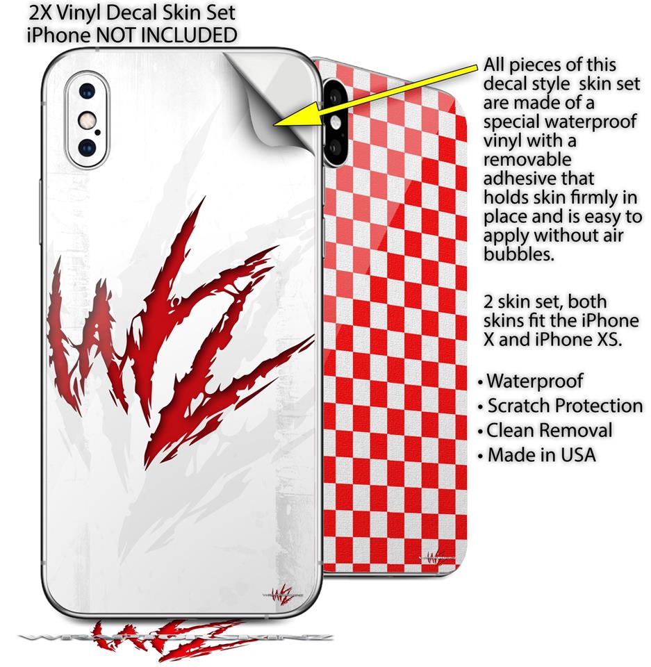 2 Decal style Skin Wraps set compatible with Apple iPhone X and XS WraptorSkinz WZ on White