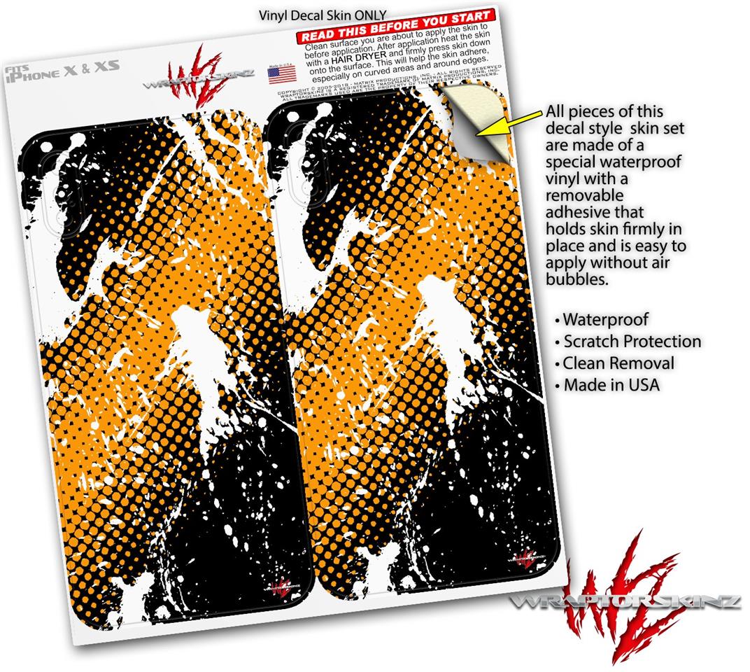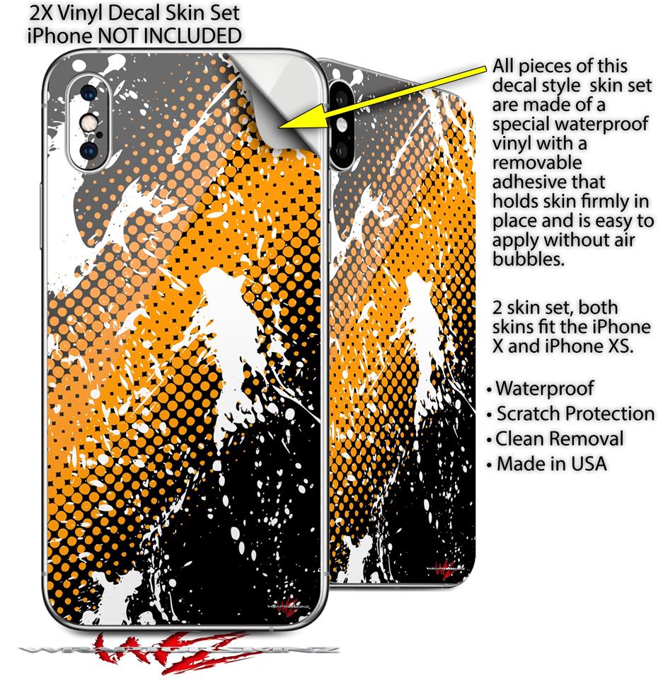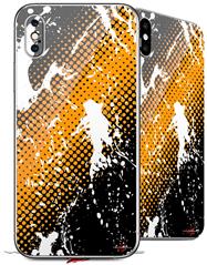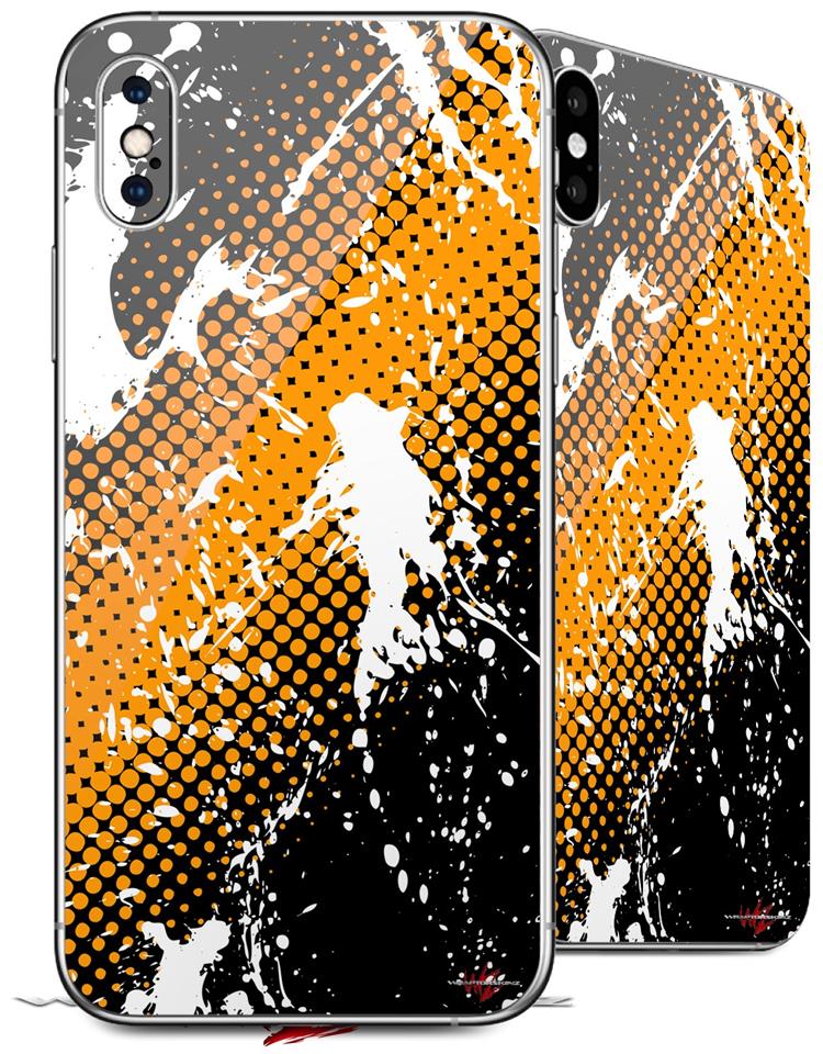 2 Decal style Skin Wraps set compatible with Apple iPhone X and XS Halftone Splatter White Orange