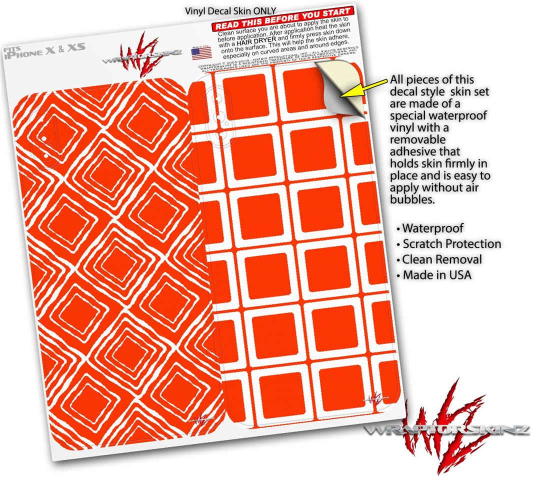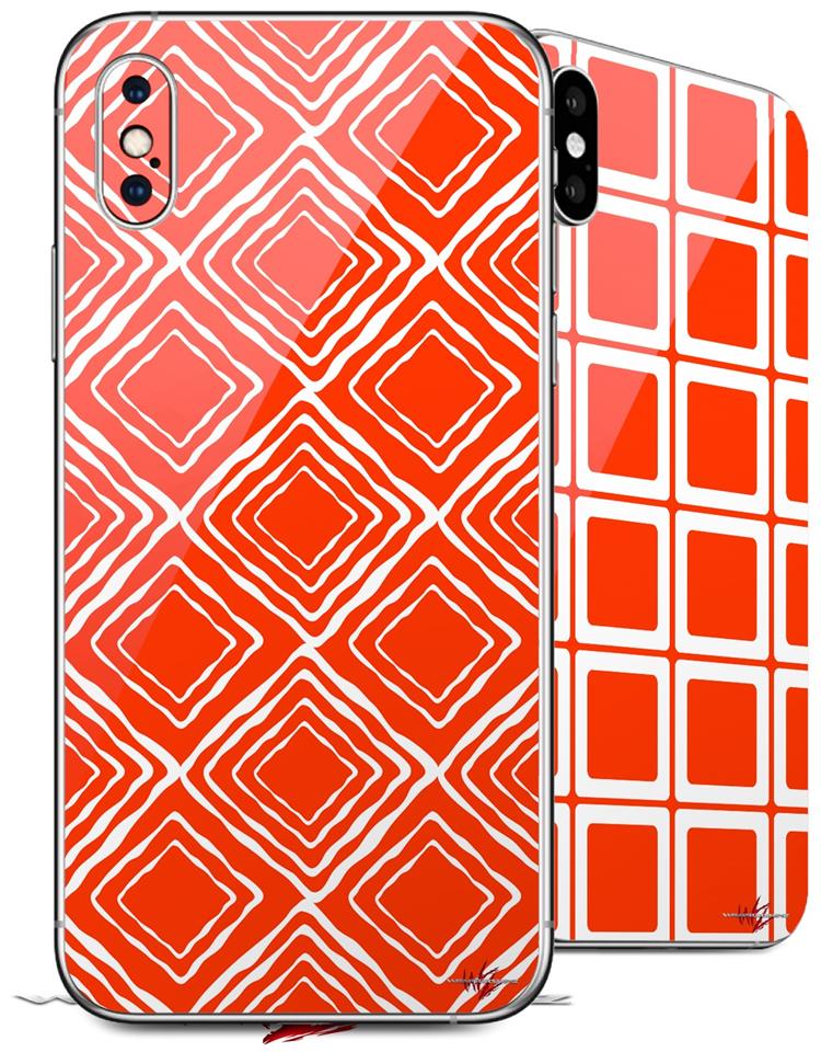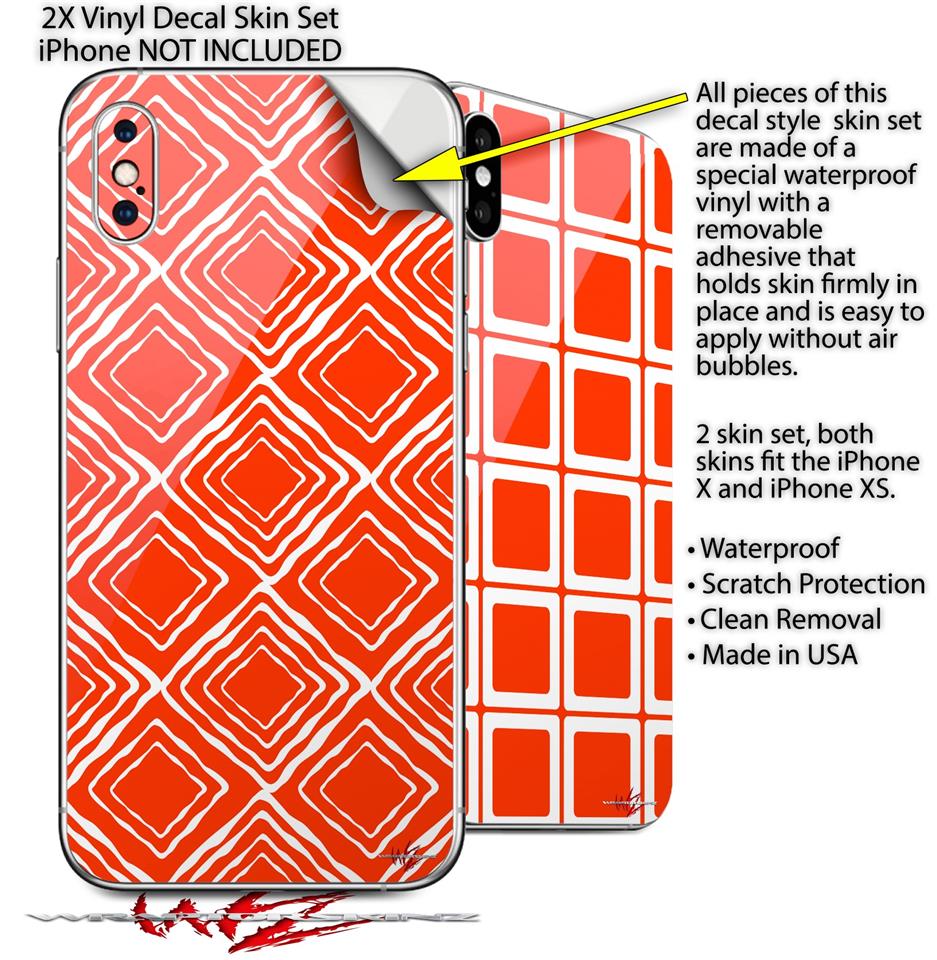 2 Decal style Skin Wraps set compatible with Apple iPhone X and XS Wavey Red