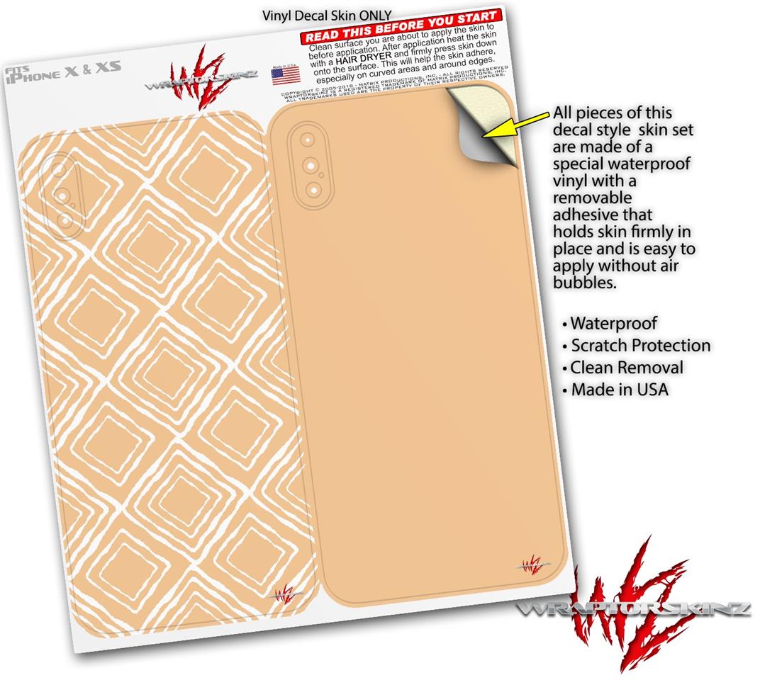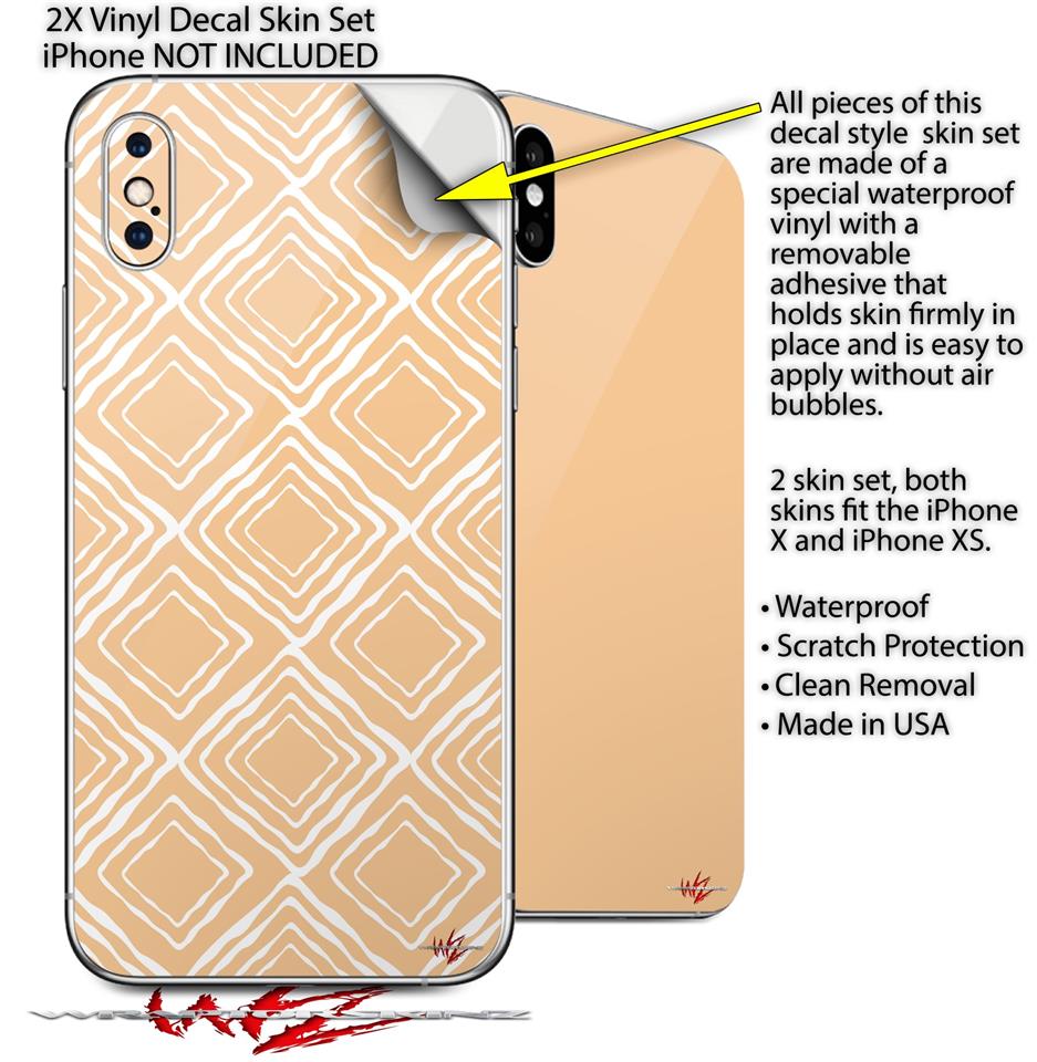 2 Decal style Skin Wraps set compatible with Apple iPhone X and XS Wavey Peach