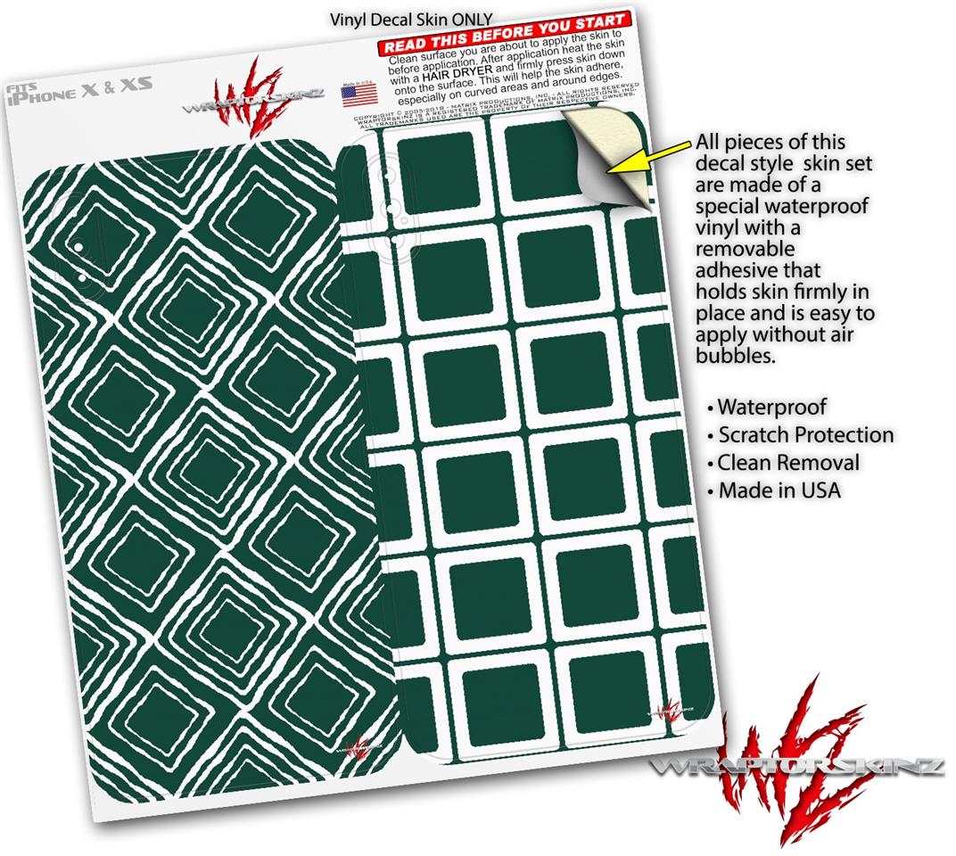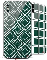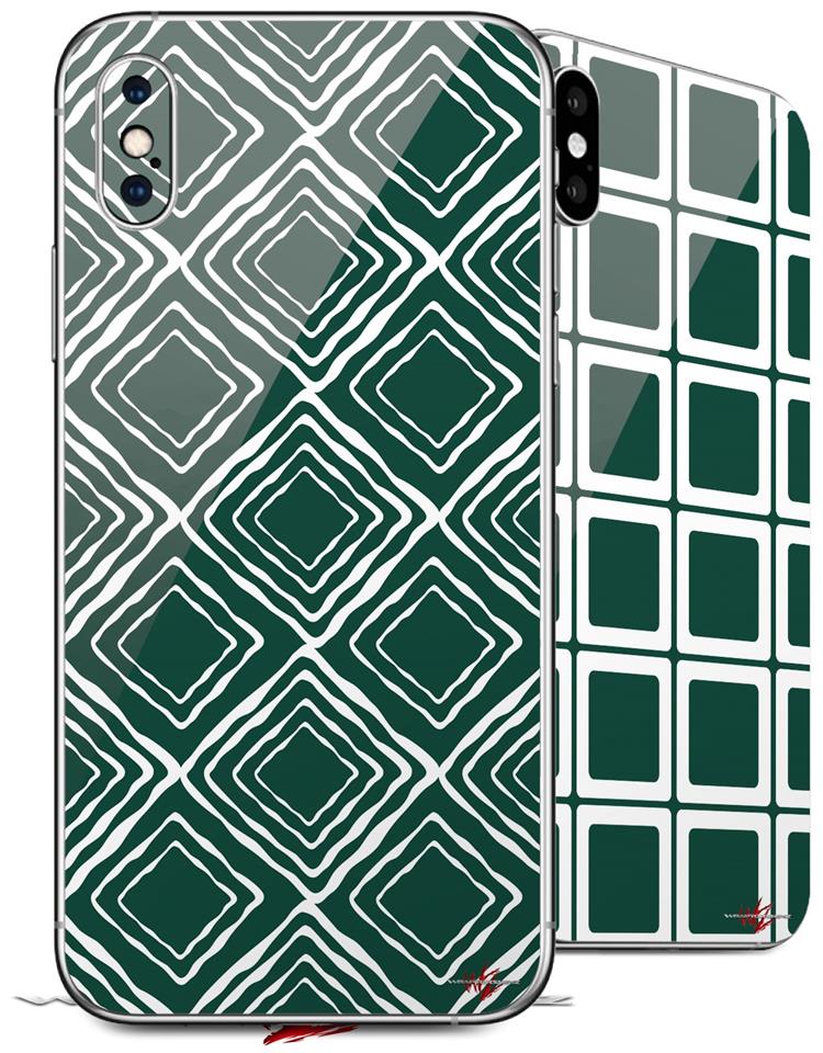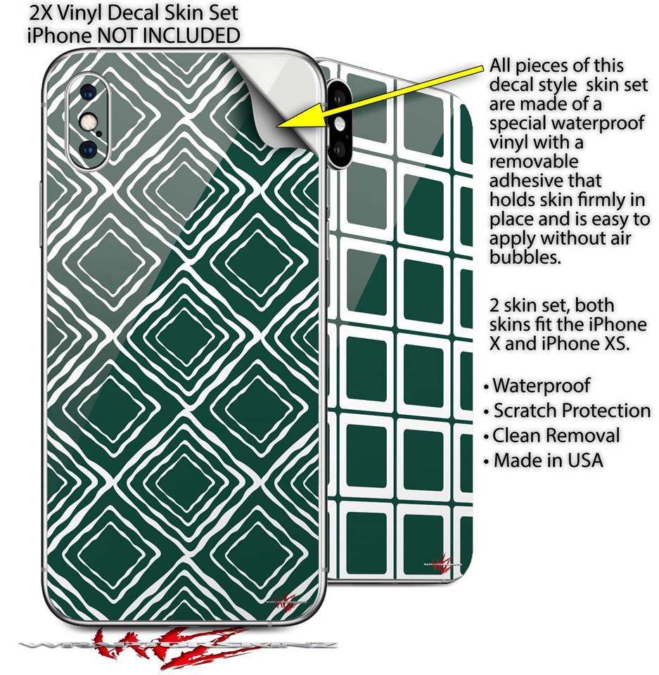 2 Decal style Skin Wraps set compatible with Apple iPhone X and XS Wavey Hunter Green