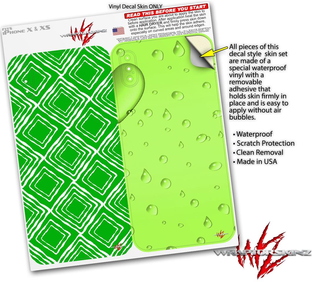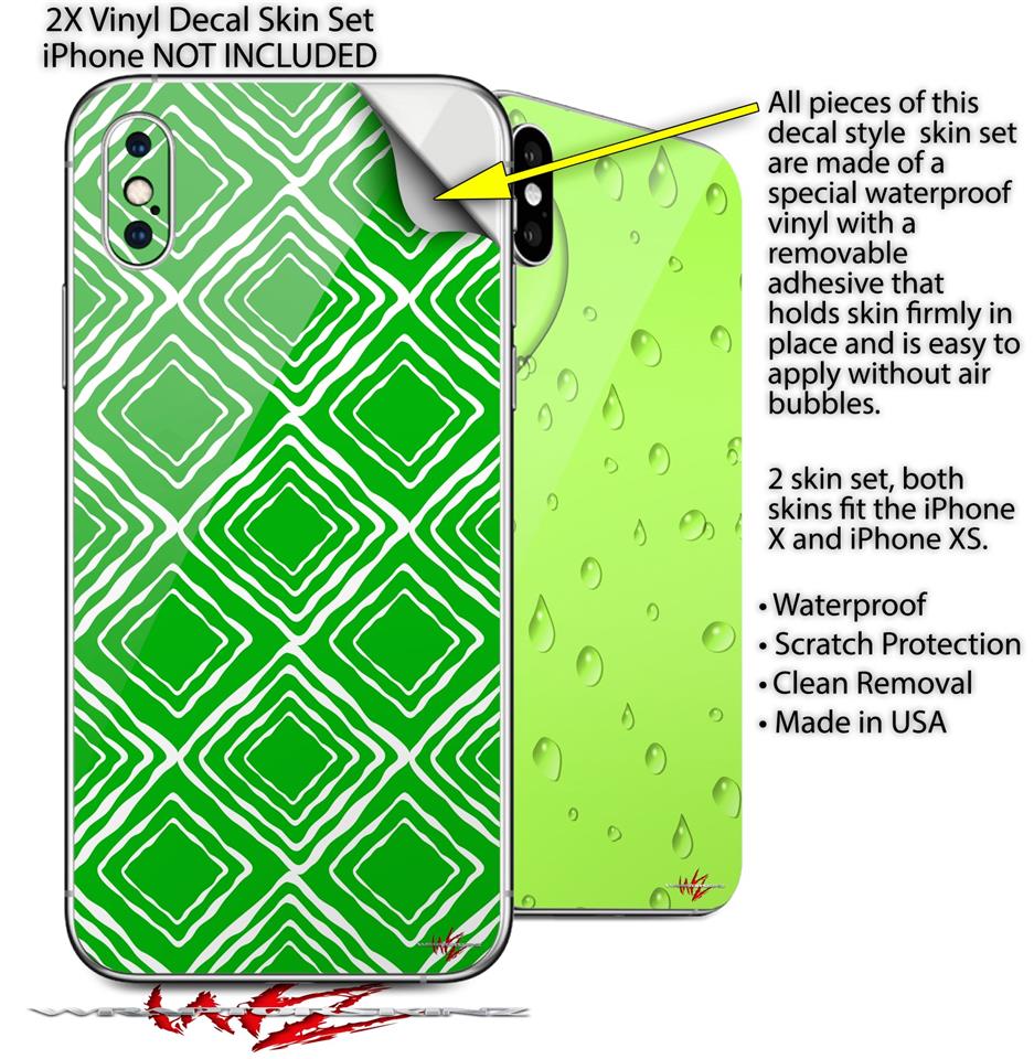 2 Decal style Skin Wraps set compatible with Apple iPhone X and XS Wavey Green