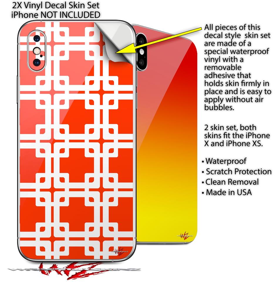 2 Decal style Skin Wraps set compatible with Apple iPhone X and XS Boxed Red