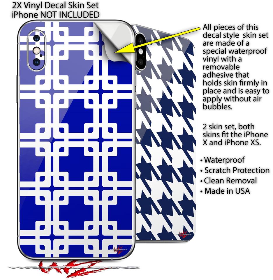 2 Decal style Skin Wraps set compatible with Apple iPhone X and XS Boxed Royal Blue
