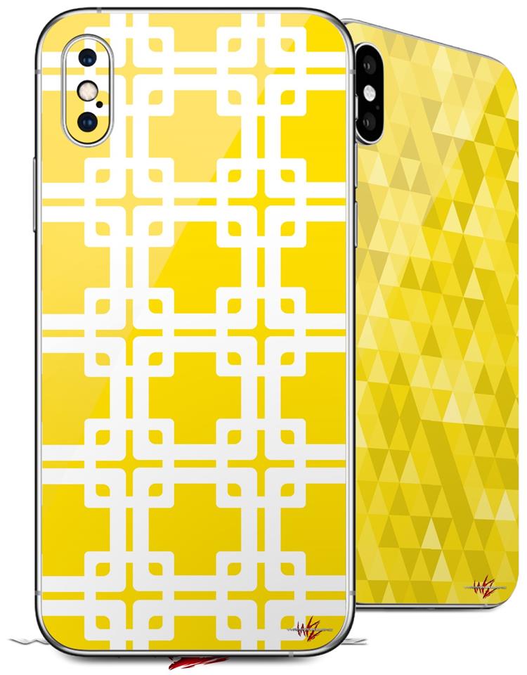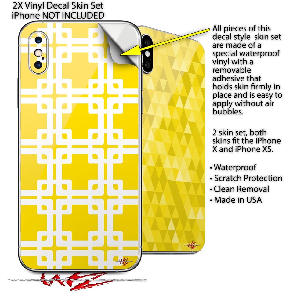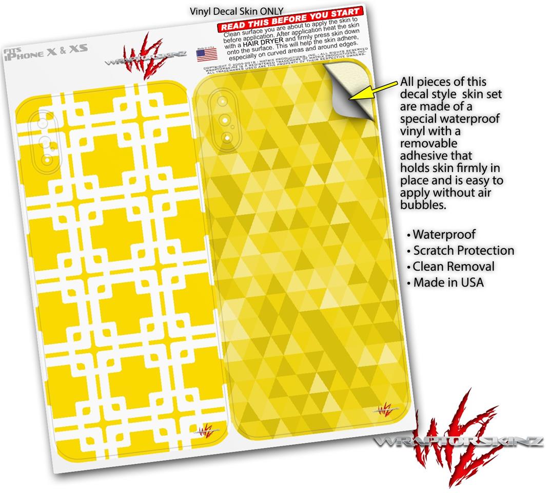 2 Decal style Skin Wraps set compatible with Apple iPhone X and XS Boxed Yellow