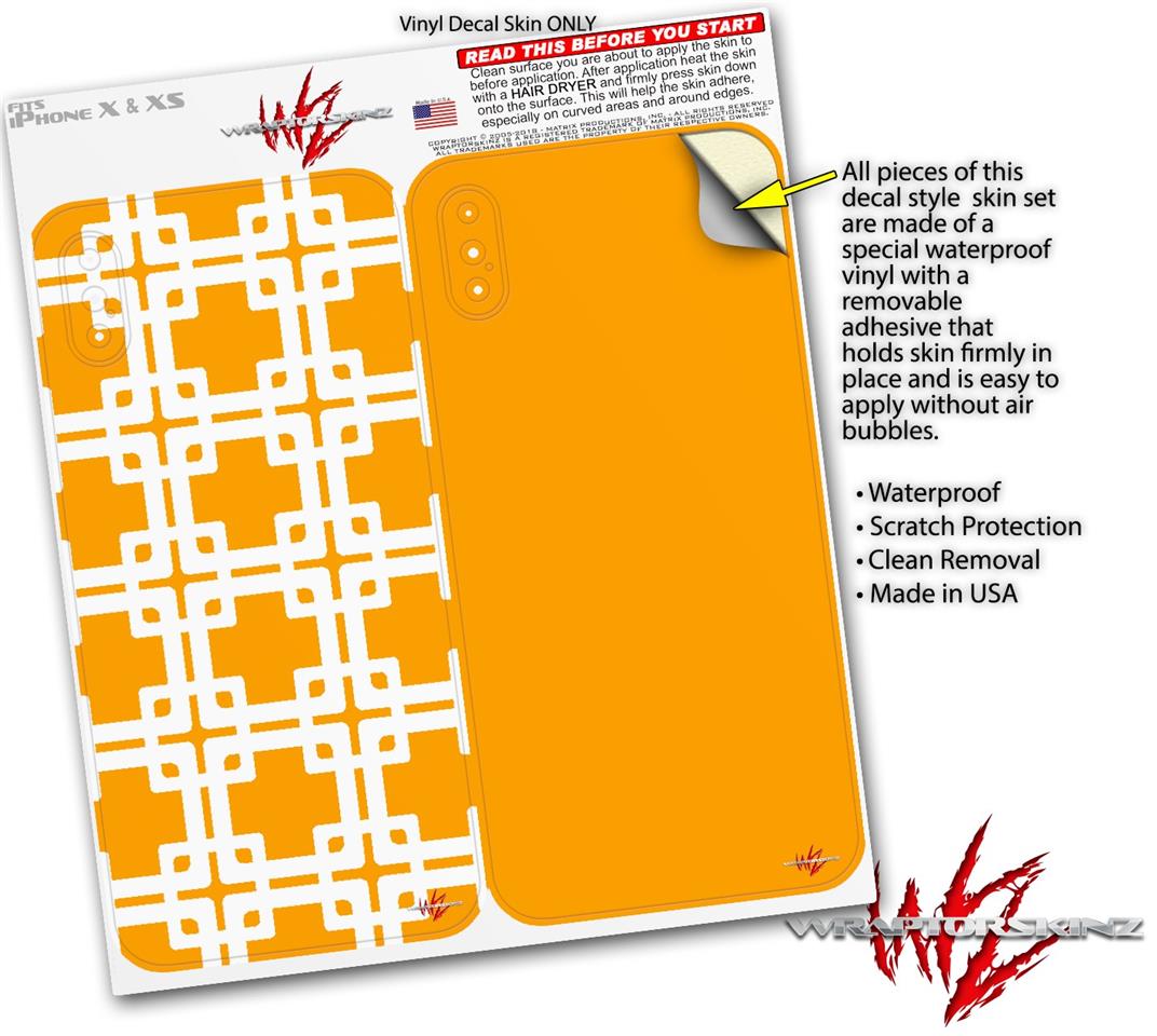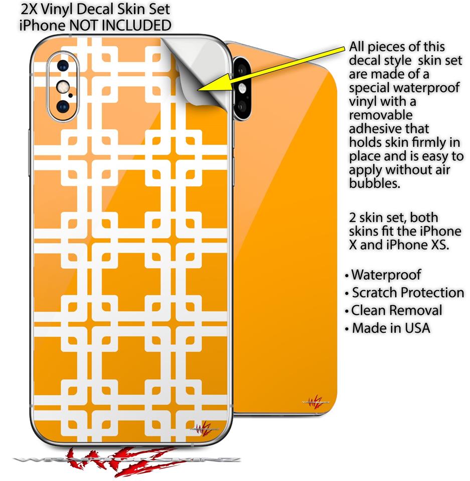 2 Decal style Skin Wraps set compatible with Apple iPhone X and XS Boxed Orange