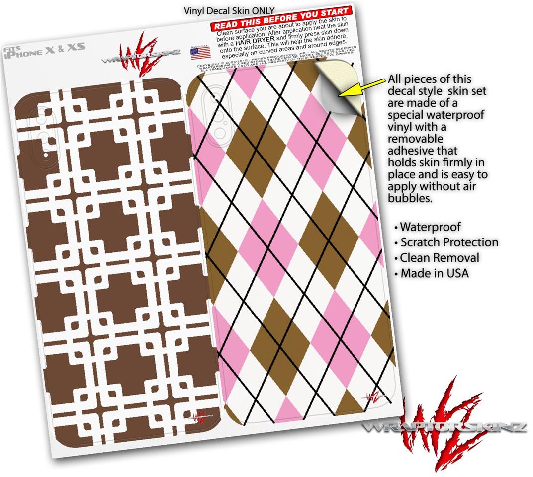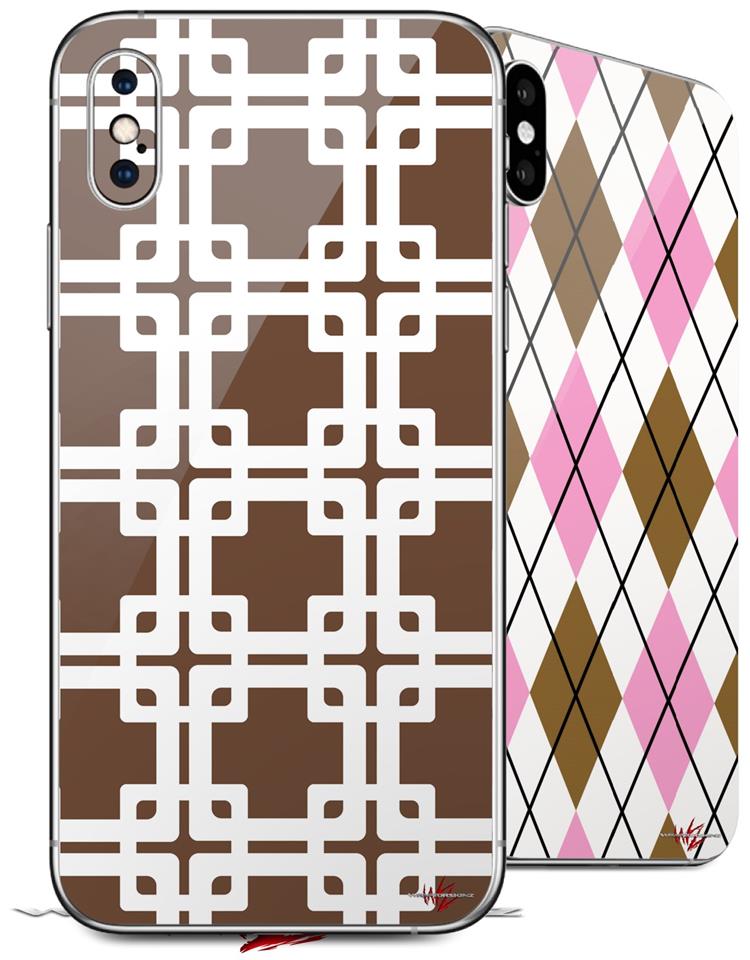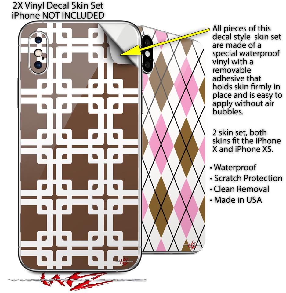 2 Decal style Skin Wraps set compatible with Apple iPhone X and XS Boxed Chocolate Brown
