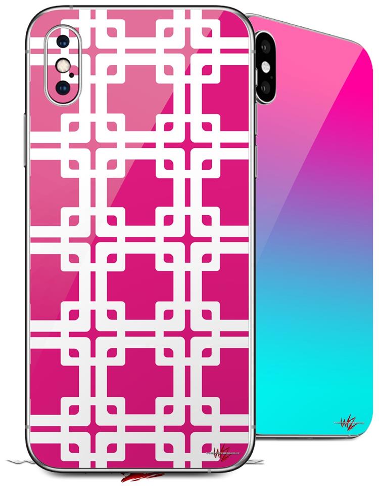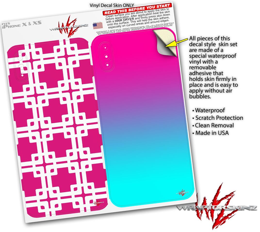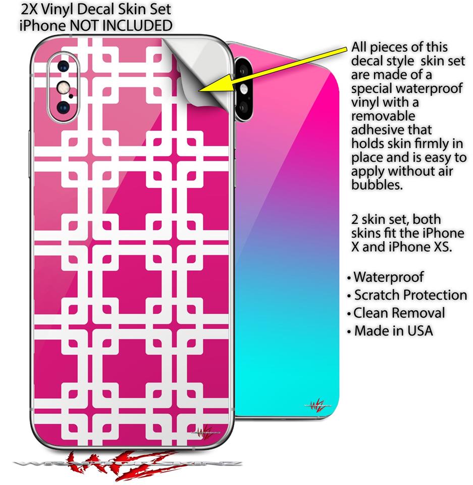 2 Decal style Skin Wraps set compatible with Apple iPhone X and XS Boxed Fushia Hot Pink