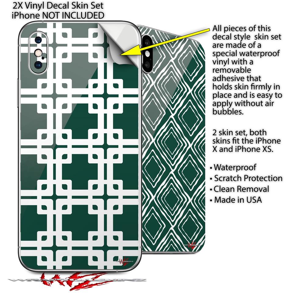 2 Decal style Skin Wraps set compatible with Apple iPhone X and XS Boxed Hunter Green