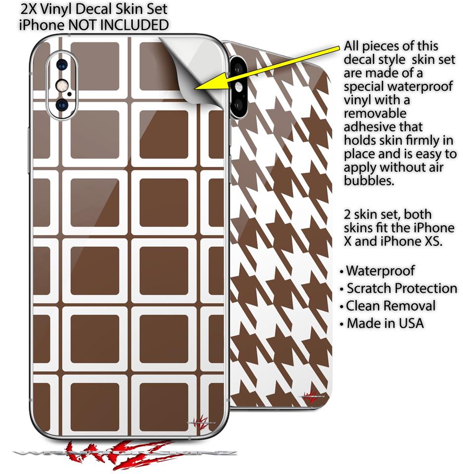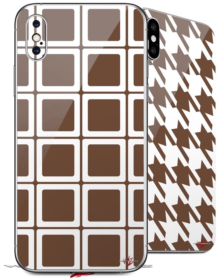 2 Decal style Skin Wraps set compatible with Apple iPhone X and XS Squared Chocolate Brown