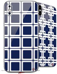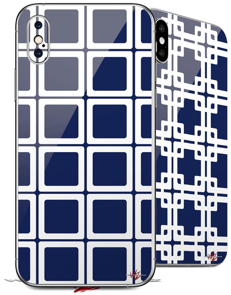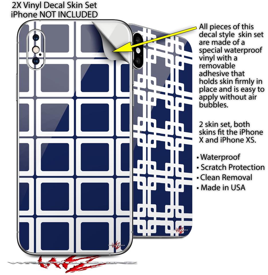 2 Decal style Skin Wraps set compatible with Apple iPhone X and XS Squared Navy Blue