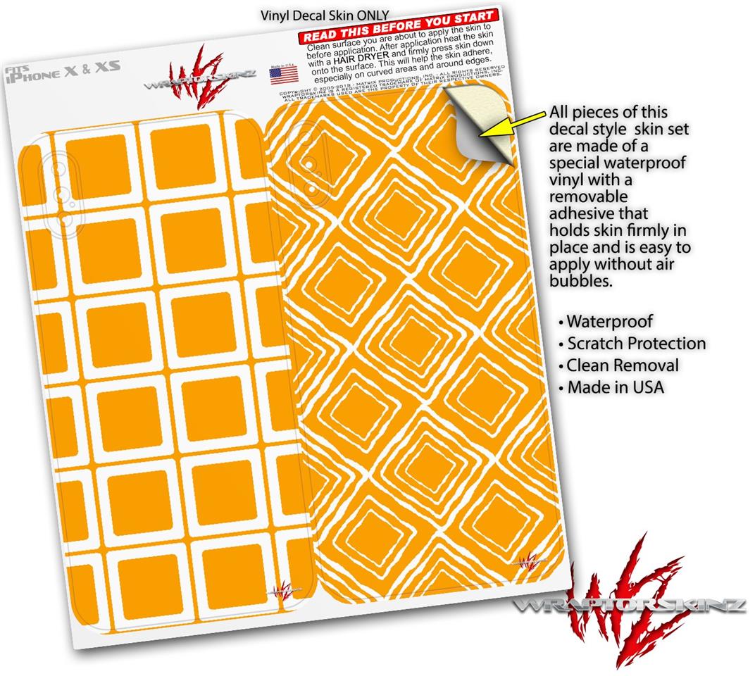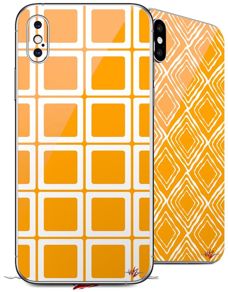 2 Decal style Skin Wraps set compatible with Apple iPhone X and XS Squared Orange