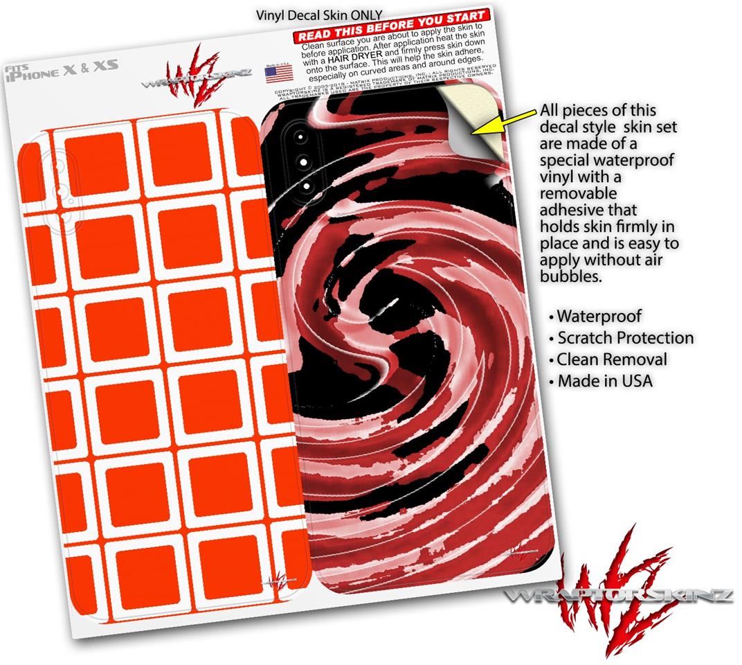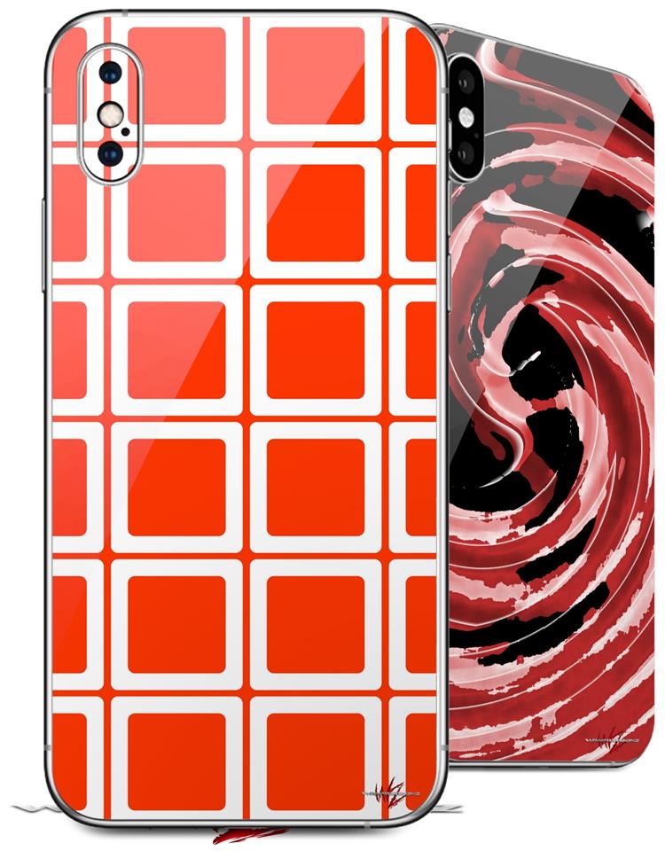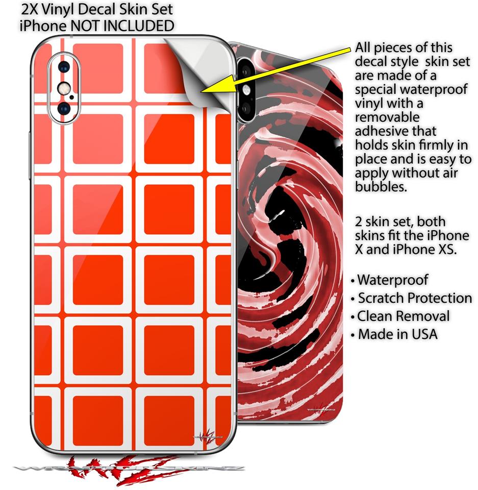 2 Decal style Skin Wraps set compatible with Apple iPhone X and XS Squared Red