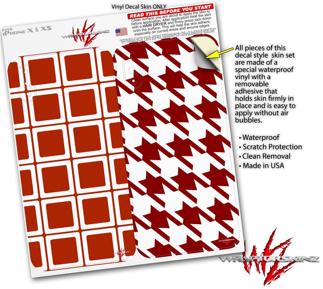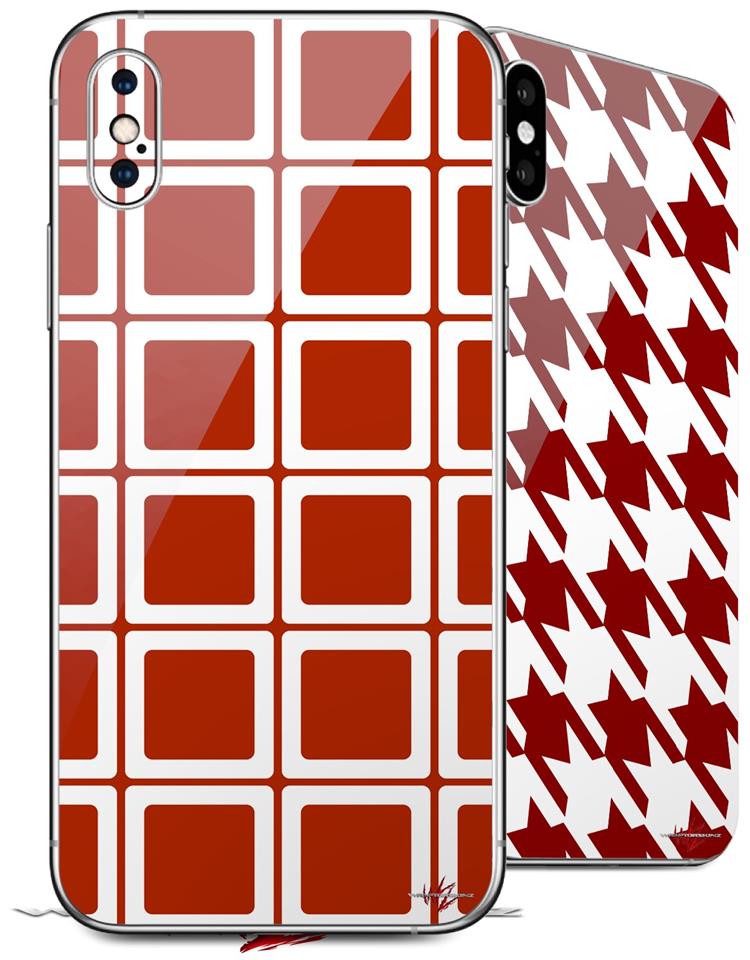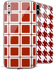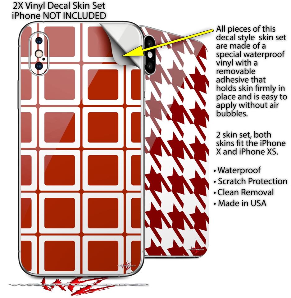 2 Decal style Skin Wraps set compatible with Apple iPhone X and XS Squared Red Dark