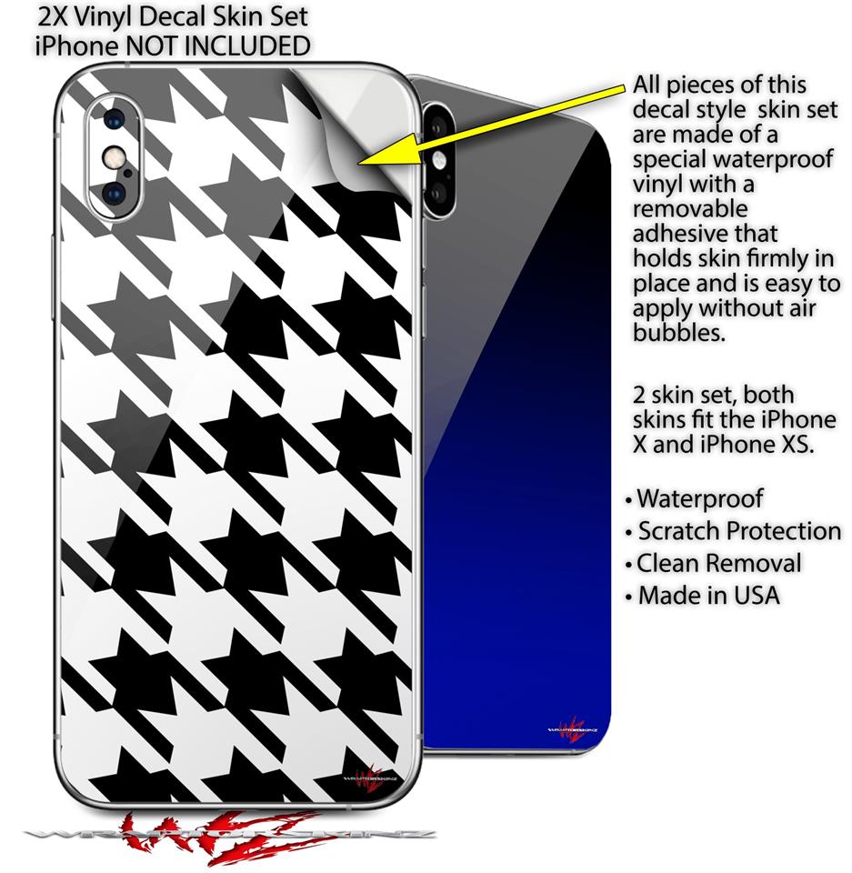2 Decal style Skin Wraps set compatible with Apple iPhone X and XS Houndstooth Black