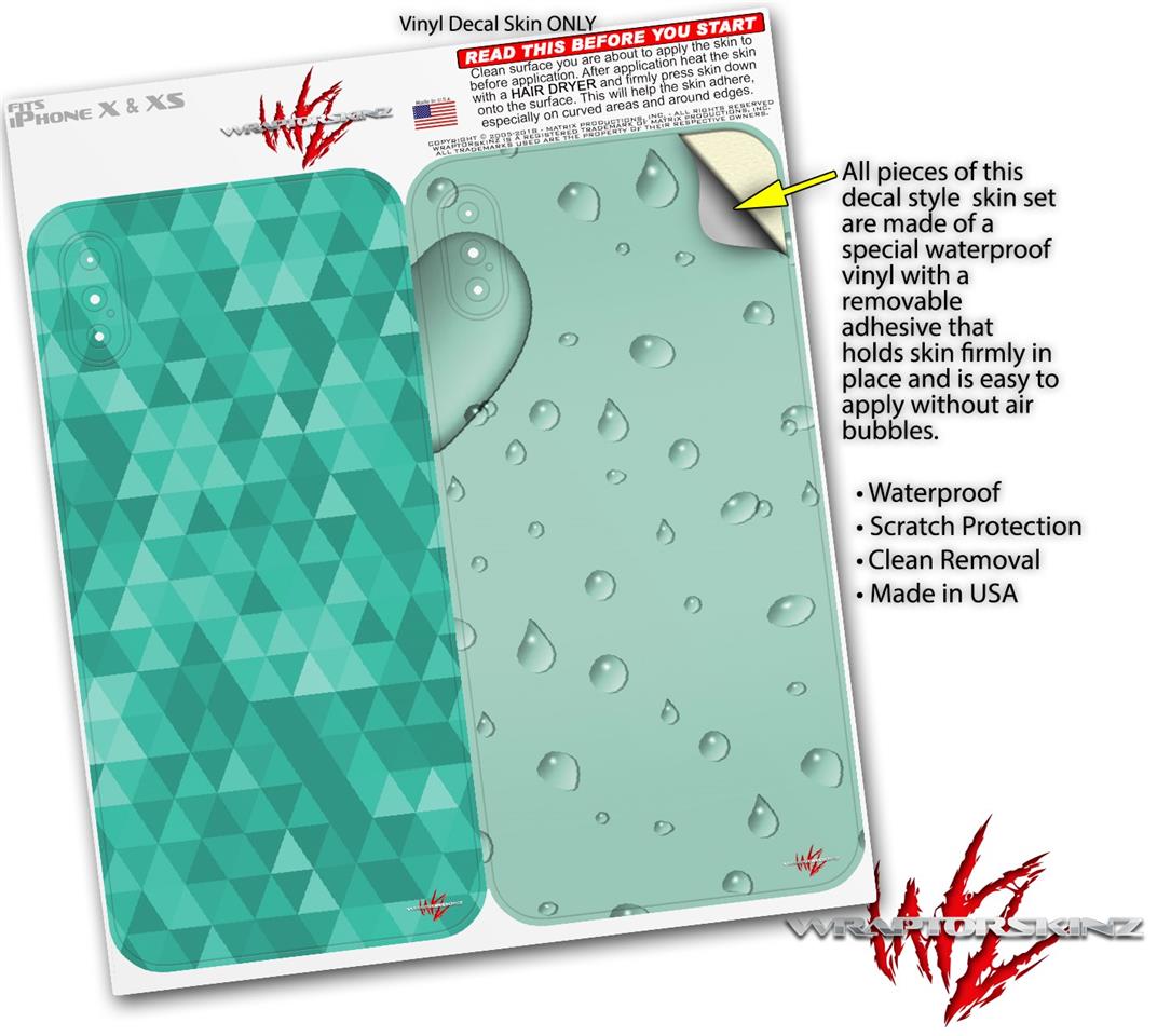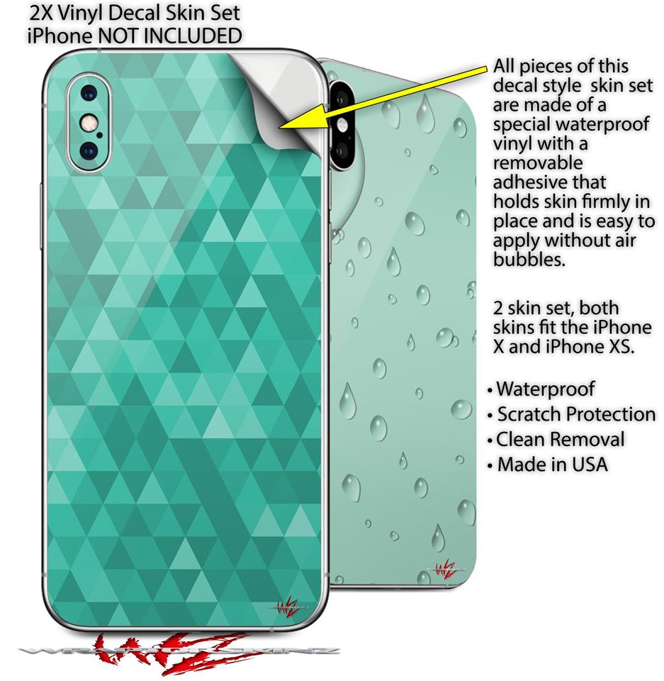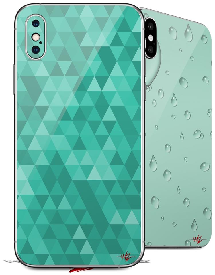 2 Decal style Skin Wraps set compatible with Apple iPhone X and XS Triangle Mosaic Seafoam Green