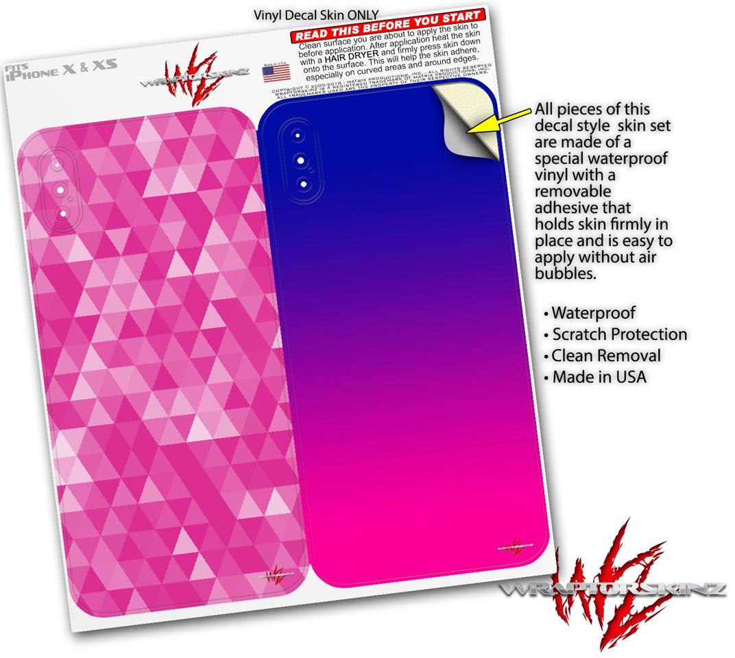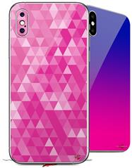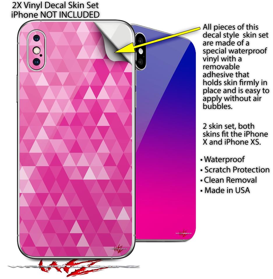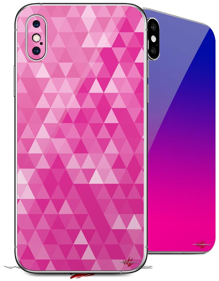 2 Decal style Skin Wraps set compatible with Apple iPhone X and XS Triangle Mosaic Fuchsia