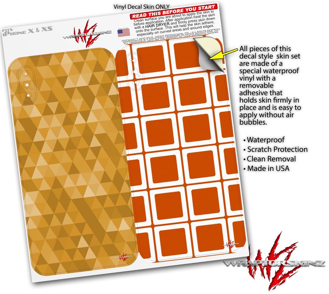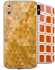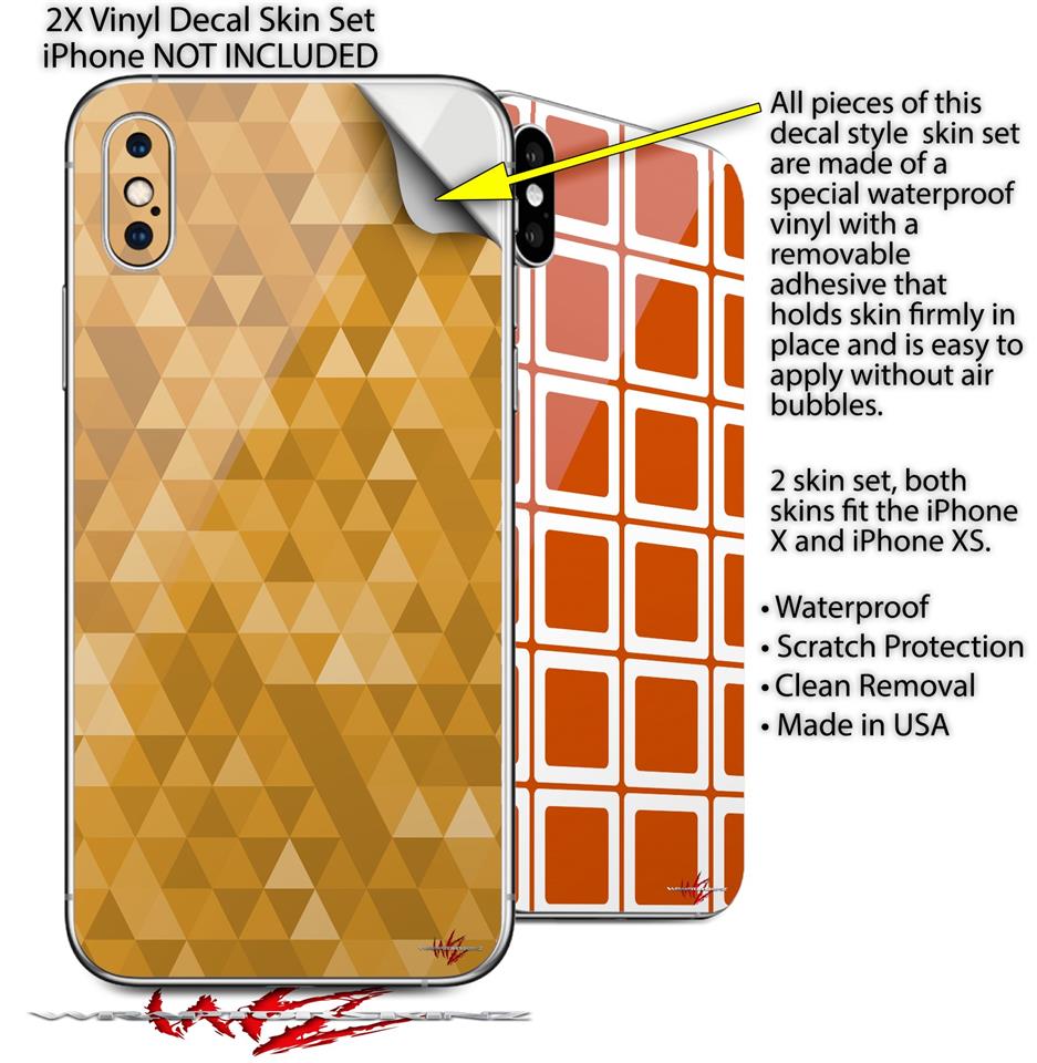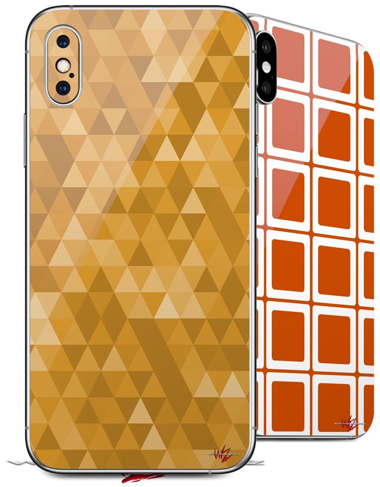 2 Decal style Skin Wraps set compatible with Apple iPhone X and XS Triangle Mosaic Orange