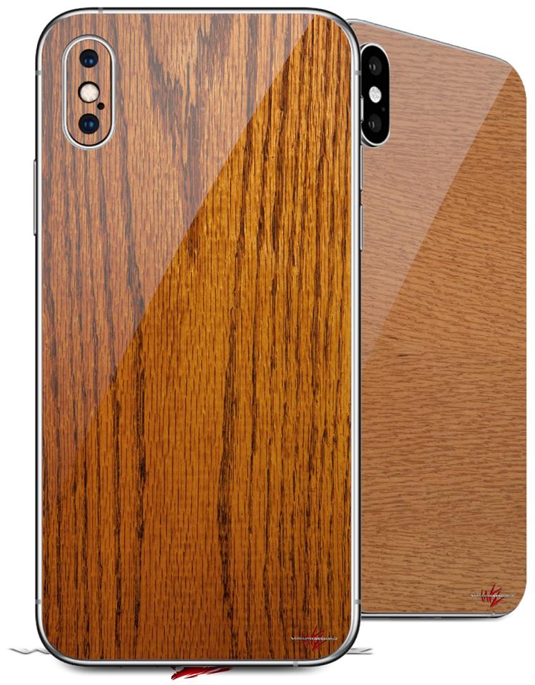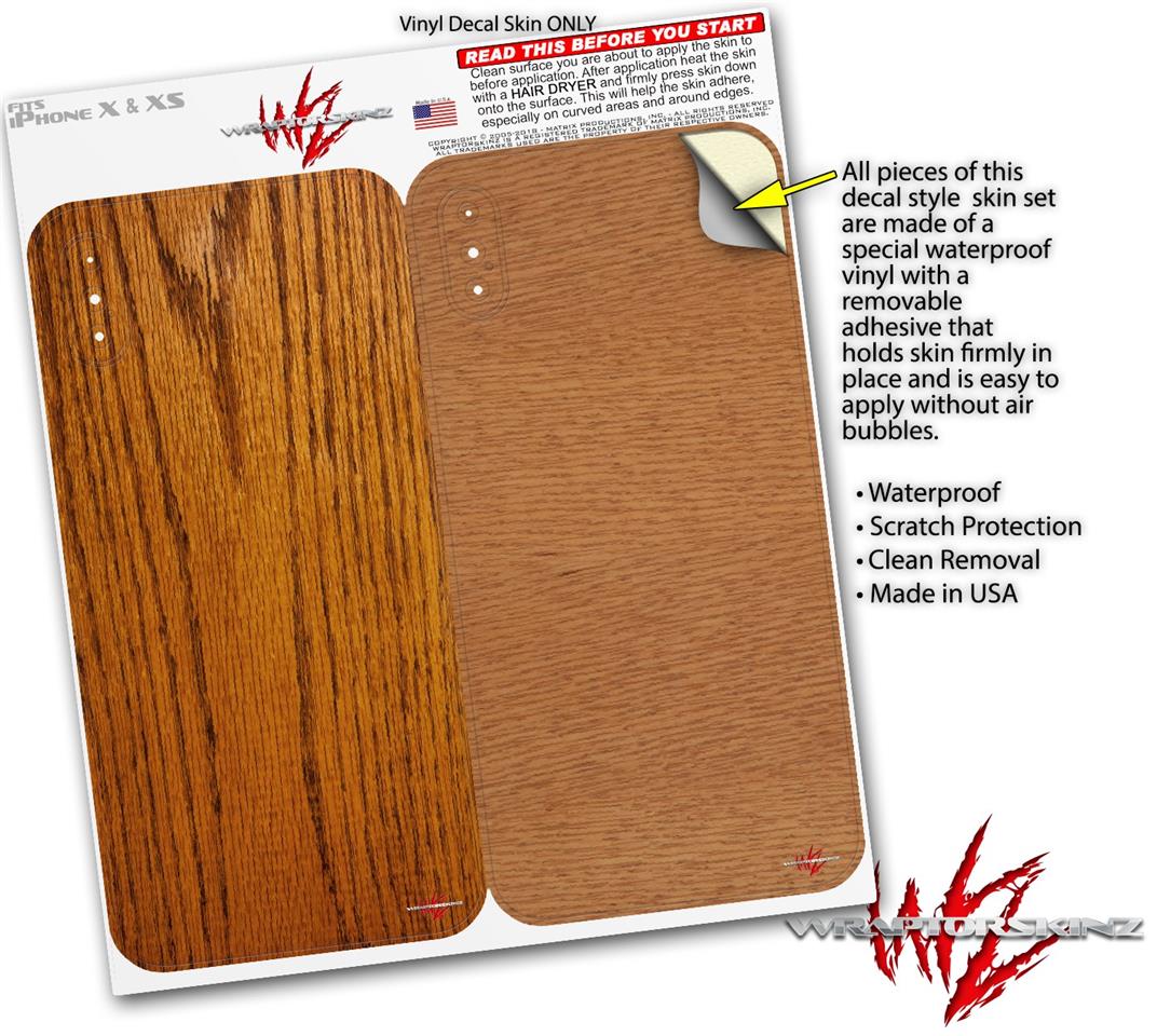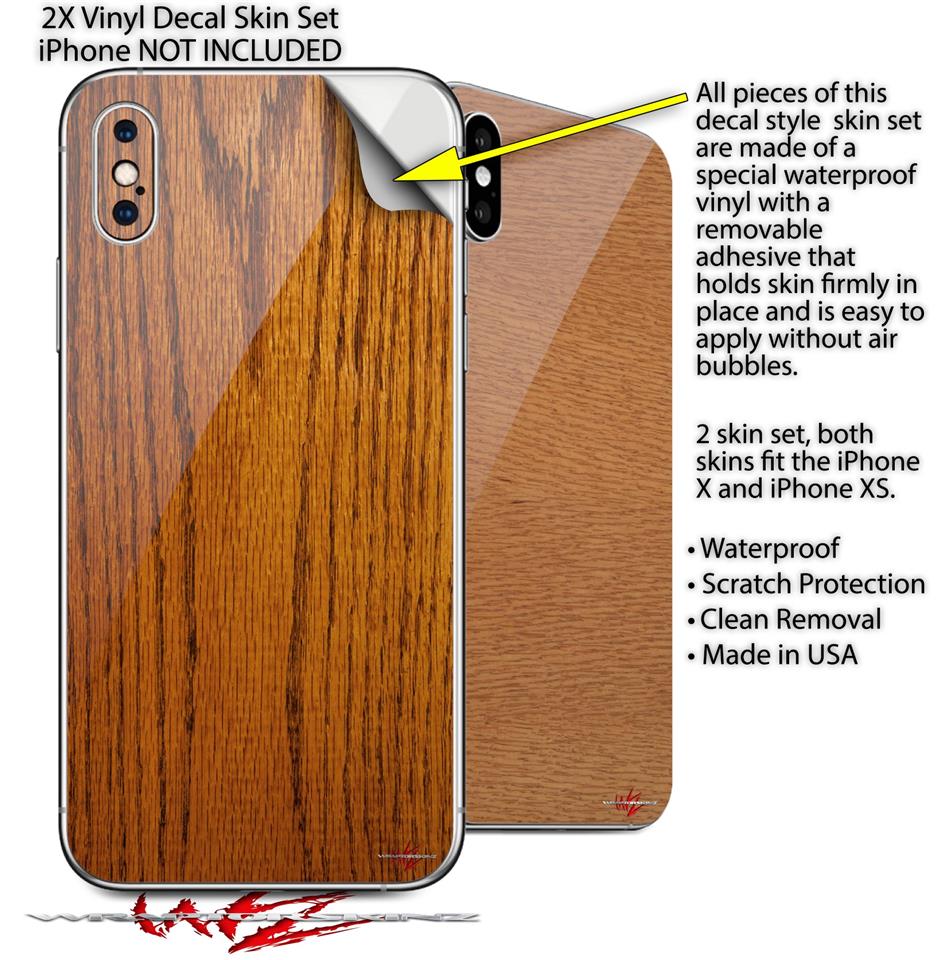 2 Decal style Skin Wraps set compatible with Apple iPhone X and XS Wood Grain - Oak 01