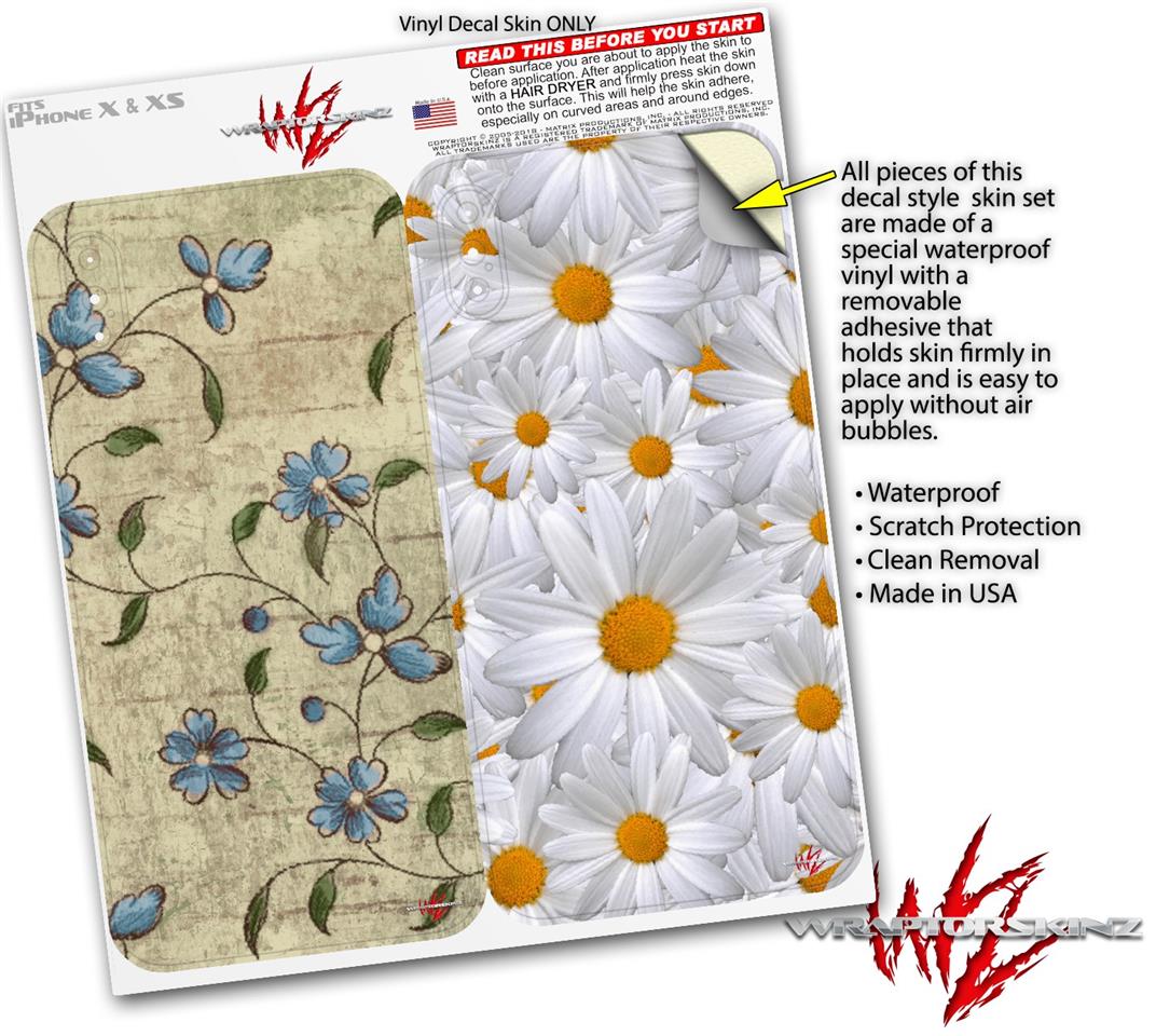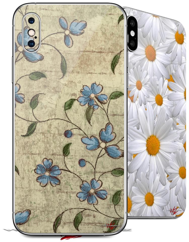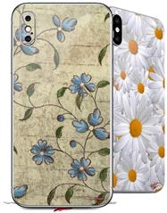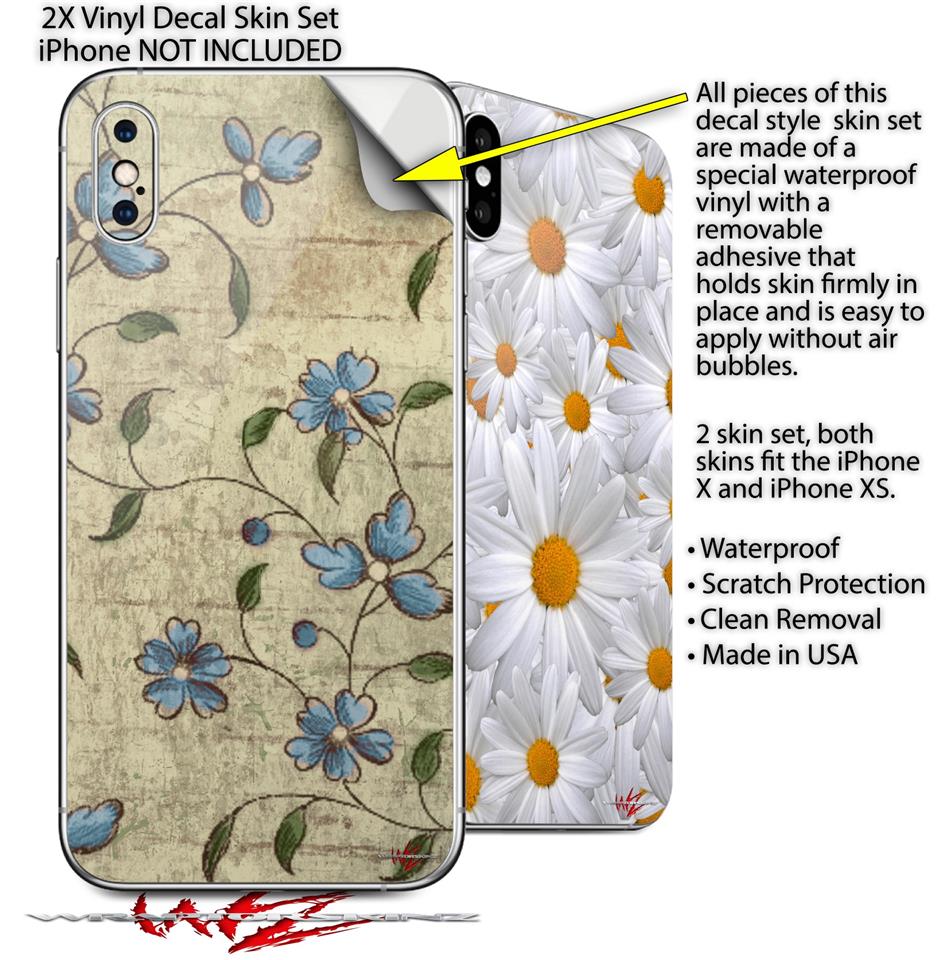 2 Decal style Skin Wraps set compatible with Apple iPhone X and XS Flowers and Berries Blue