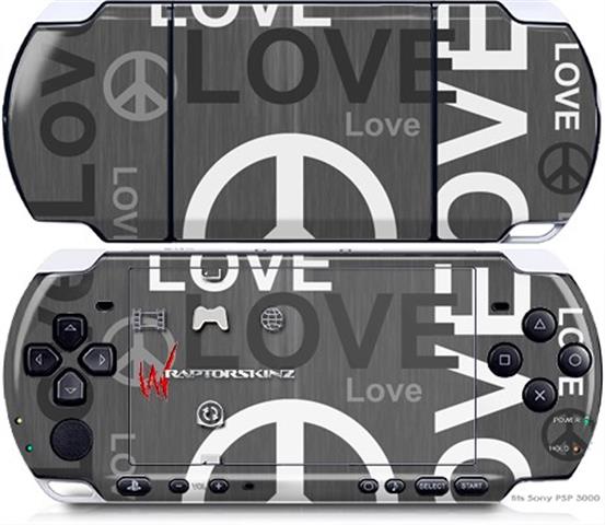 Sony PSP 3000 Decal Style Skin - Love and Peace Gray