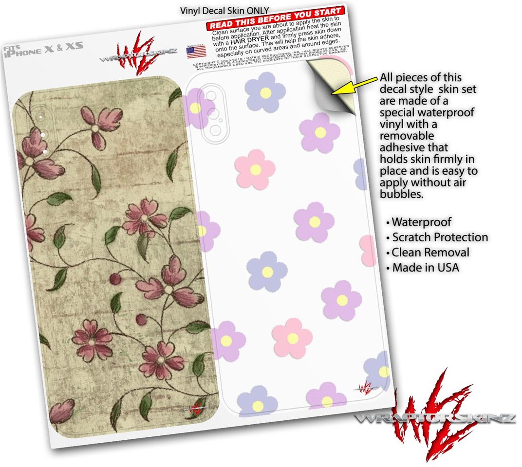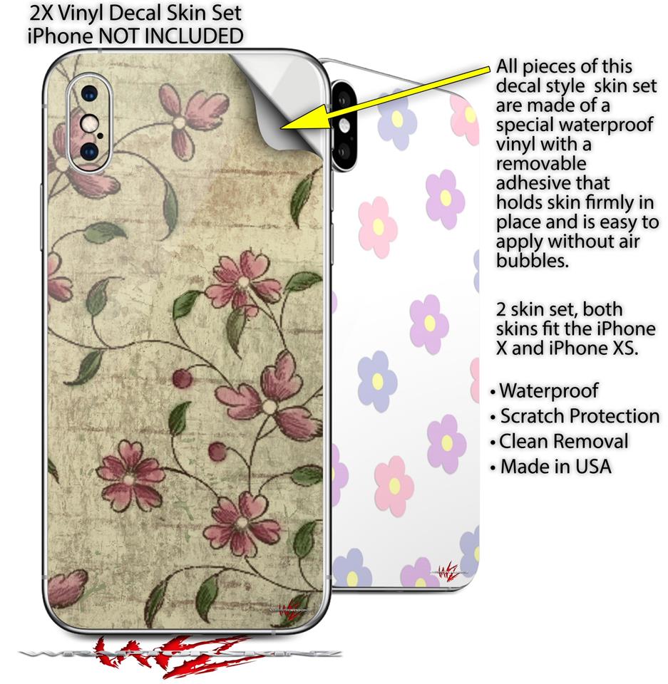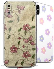 2 Decal style Skin Wraps set compatible with Apple iPhone X and XS Flowers and Berries Pink