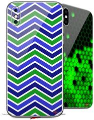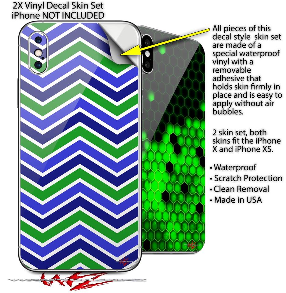 2 Decal style Skin Wraps set compatible with Apple iPhone X and XS Zig Zag Blue Green