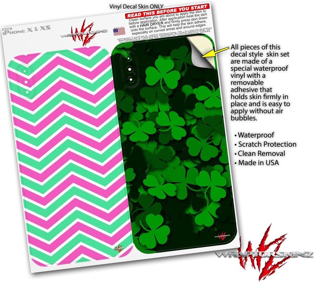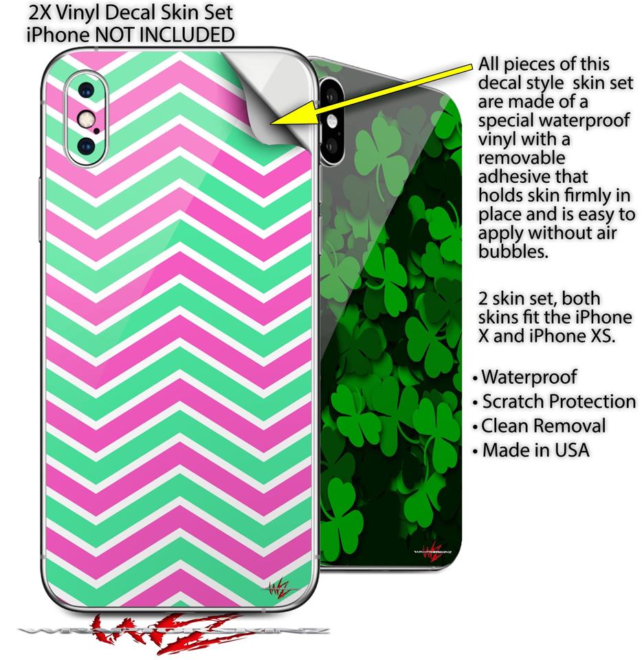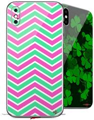 2 Decal style Skin Wraps set compatible with Apple iPhone X and XS Zig Zag Teal Green and Pink